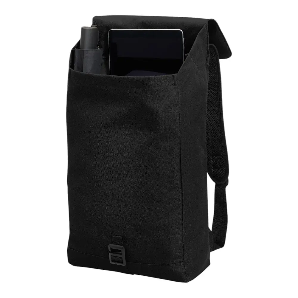 This versatile rucksack is made from durable 600D poly canvas, offering both style and functionality. It features a main compartment with a padded laptop panel to securely store your laptop, along with interior organization pockets for easy access to small essentials. The front zippered rucksack flap with a hook closure provides added security, while the padded air mesh shoulder straps and luggage trolley pass-through on the back ensure comfortable carrying and travel convenience.