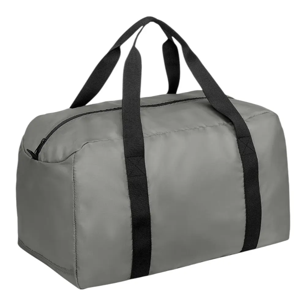 This compact travel duffel is made from durable mini ripstop polyester, designed to handle all your essentials. Featuring webbing carry handles and a center zippered opening, it offers practicality and convenience for travel or everyday use.