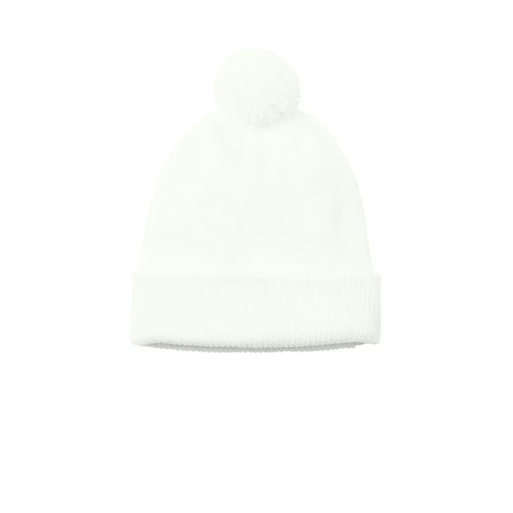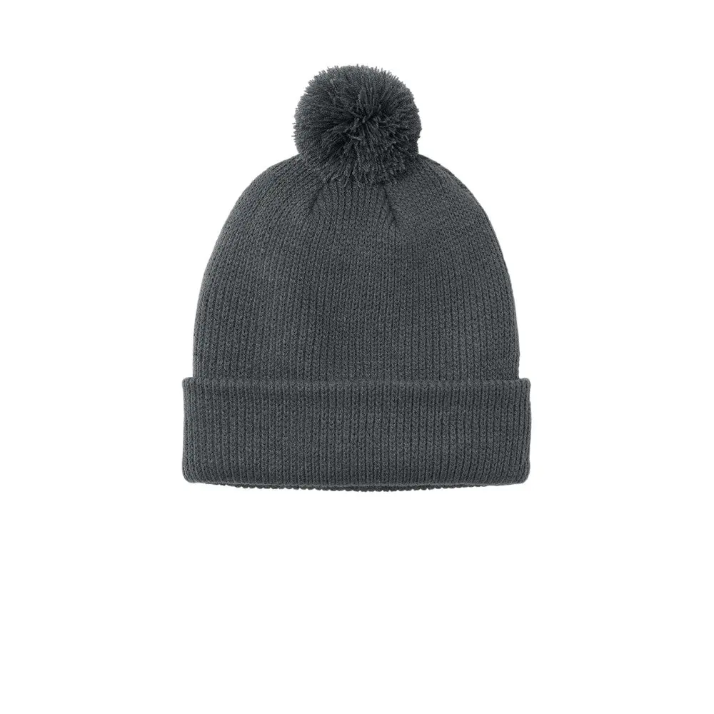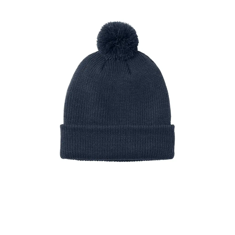This cozy pom beanie, made from 100% acrylic, features six darts at the crown for shaping and a dyed-to-match pom for added style. The adjustable cuff ensures a comfortable, customizable fit, perfect for cold weather.