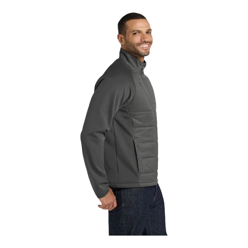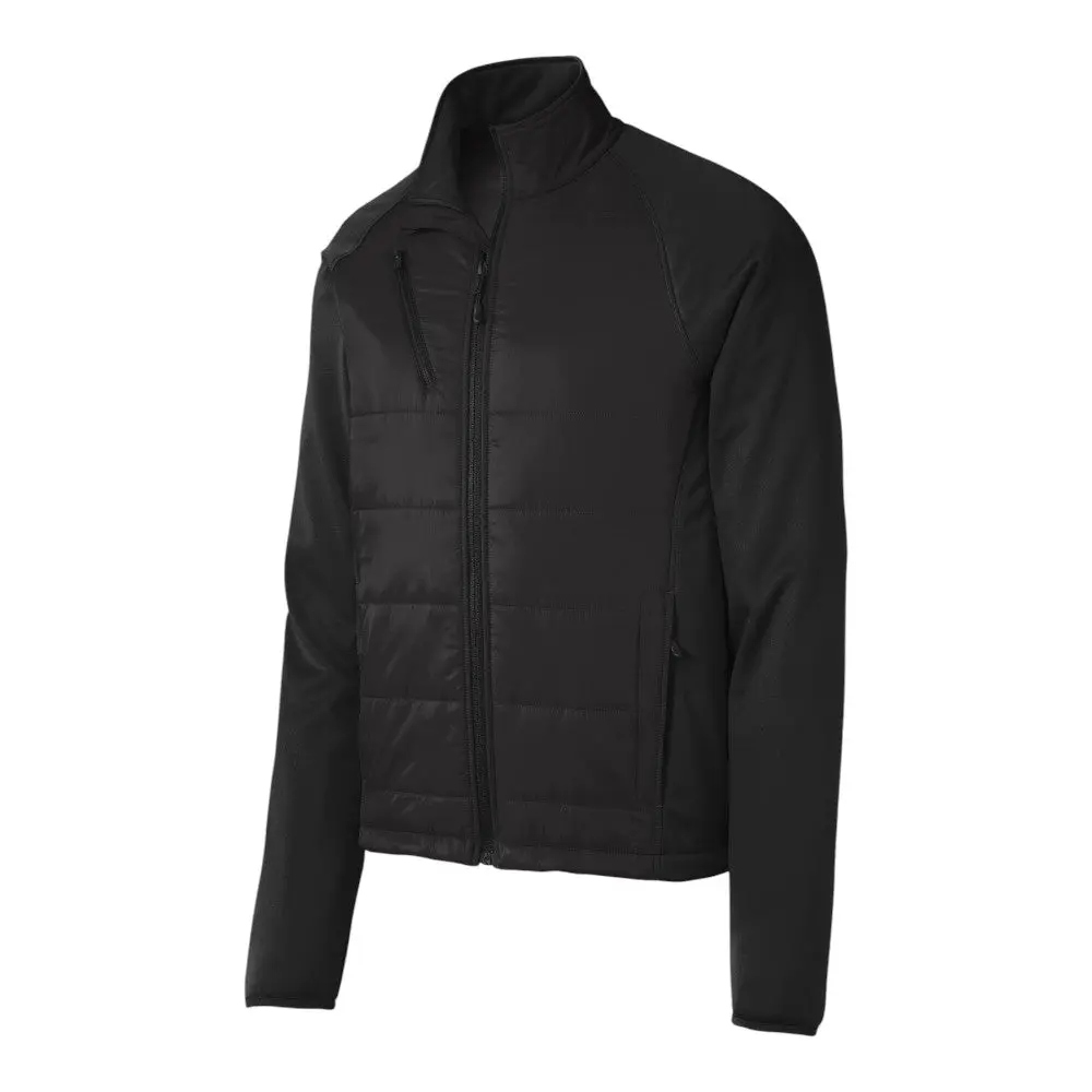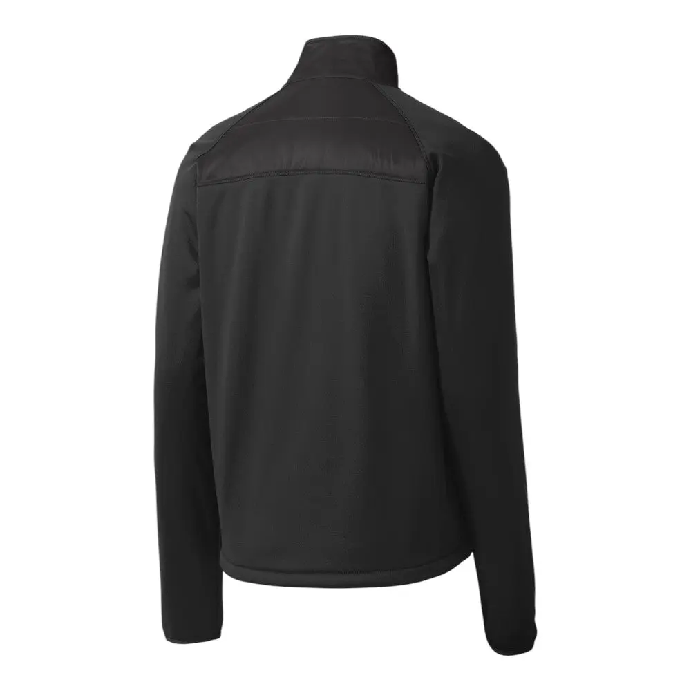 The Hybrid Soft Shell Jacket features quilted front and back panels combined with a wind-resistant, water-resistant soft shell for a trend-right, urban edge. Made with a 100% polyester knit shell bonded to a water-resistant film insert, this jacket offers both performance and style. Perfect for active wear, it features breathable fabric and adjustable elements to ensure comfort in any condition.
