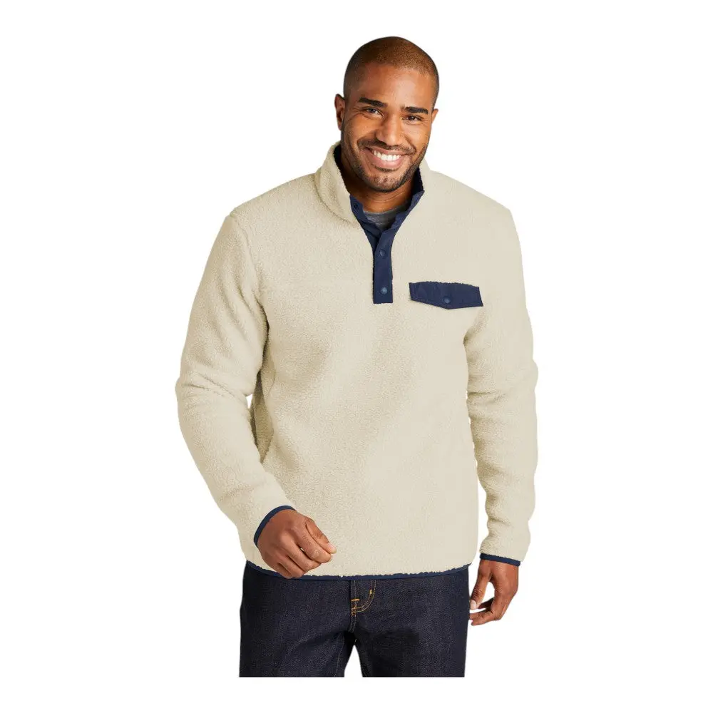 Cozy and rugged, this high-pile fleece pullover is designed for warmth and style during cool-weather outings or indoor comfort. The textured fleece offers a plush feel, while the woven snap placket and chest pocket add function and flair. It's a go-to piece for layering in any season.
