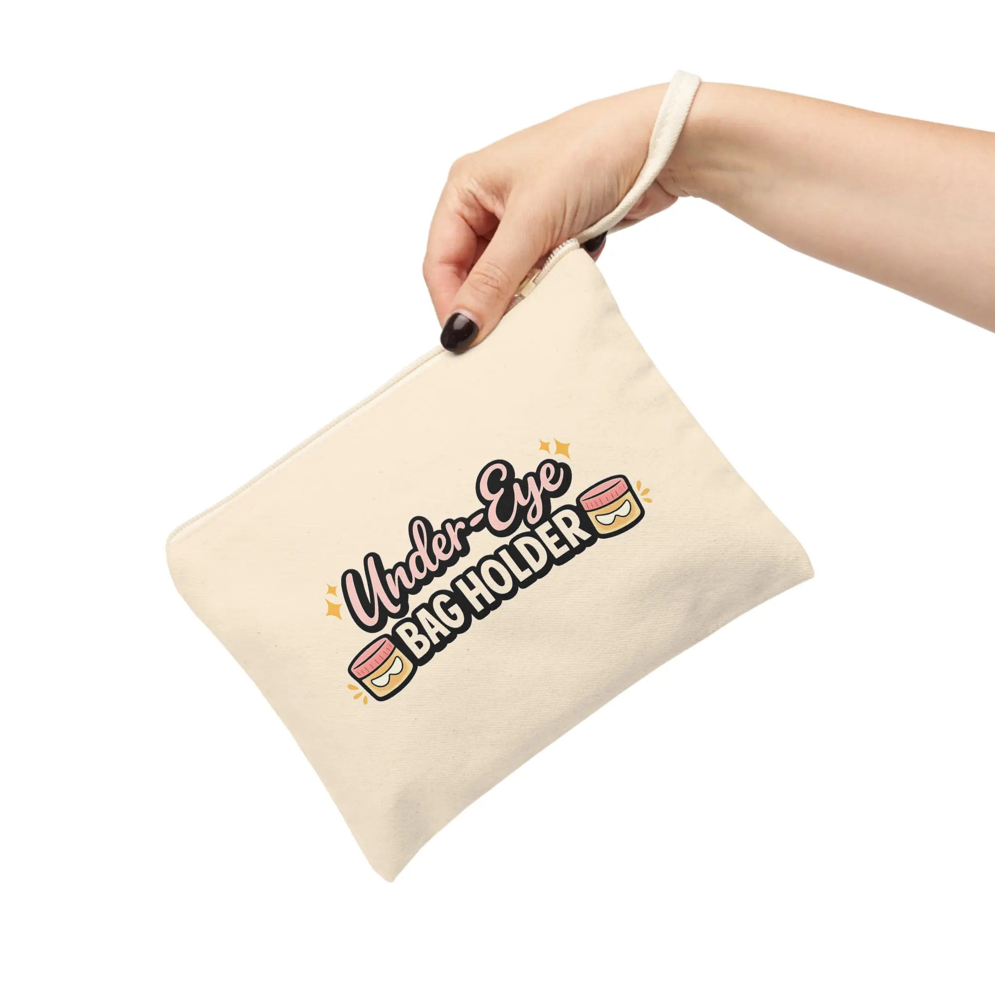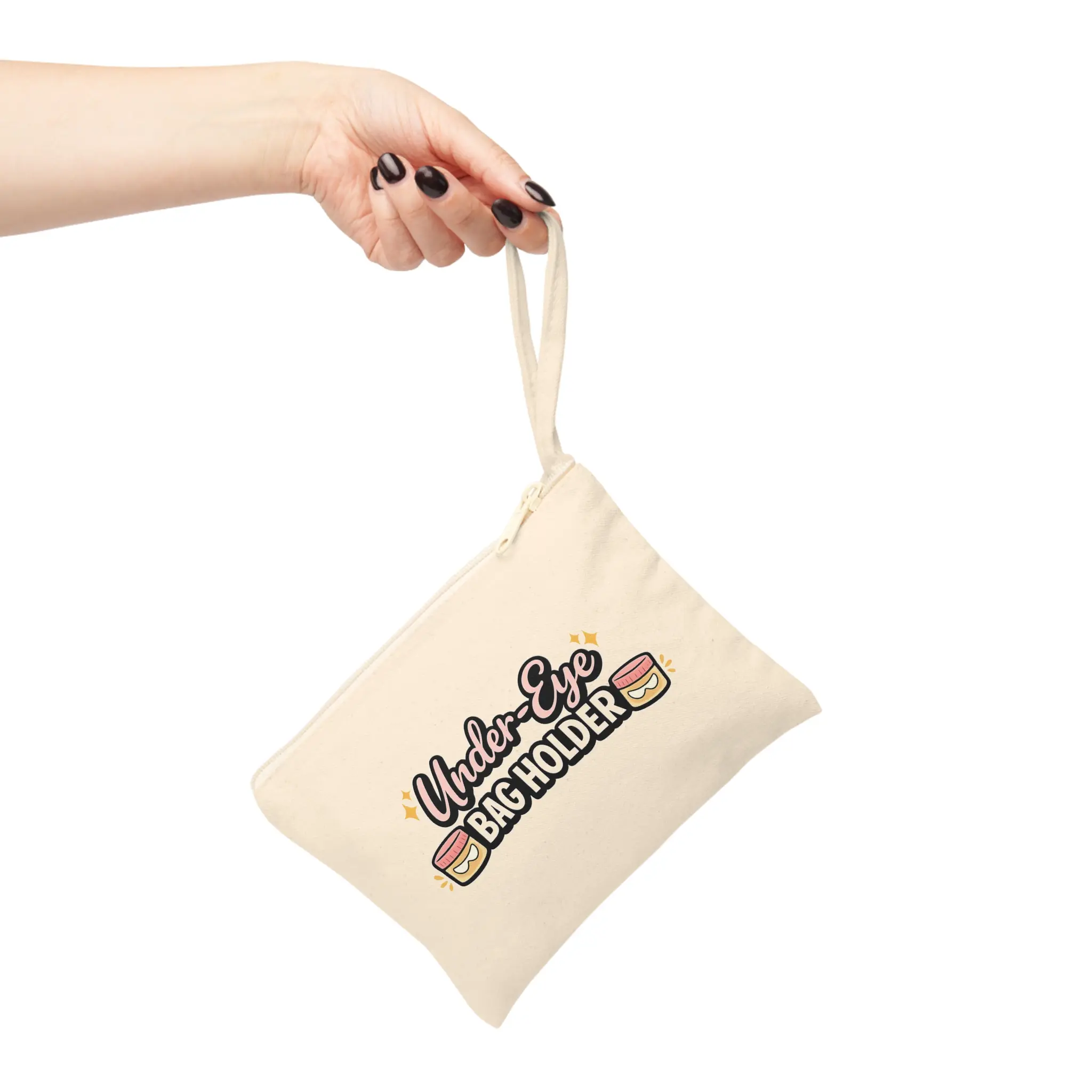 Lightweight, sandy-cream canvas pouch made to carry the tiny rituals that help you feel put-together. The soft 100% cotton surface showcases a playful “Under-Eye Bag Holder” design with smiling cream jar icons and petite sparkles. Slip in eye patches, roller, concealer, or small skincare tubes; loop the sturdy wrist handle and go. It wears like a calm, confident companion in a makeup bag or tote — casual, cheerful, and quietly practical.
