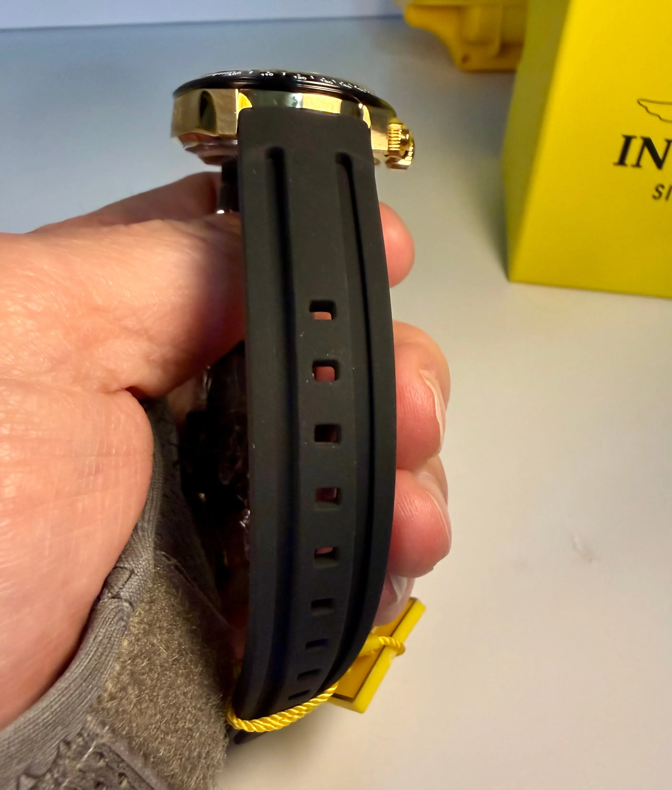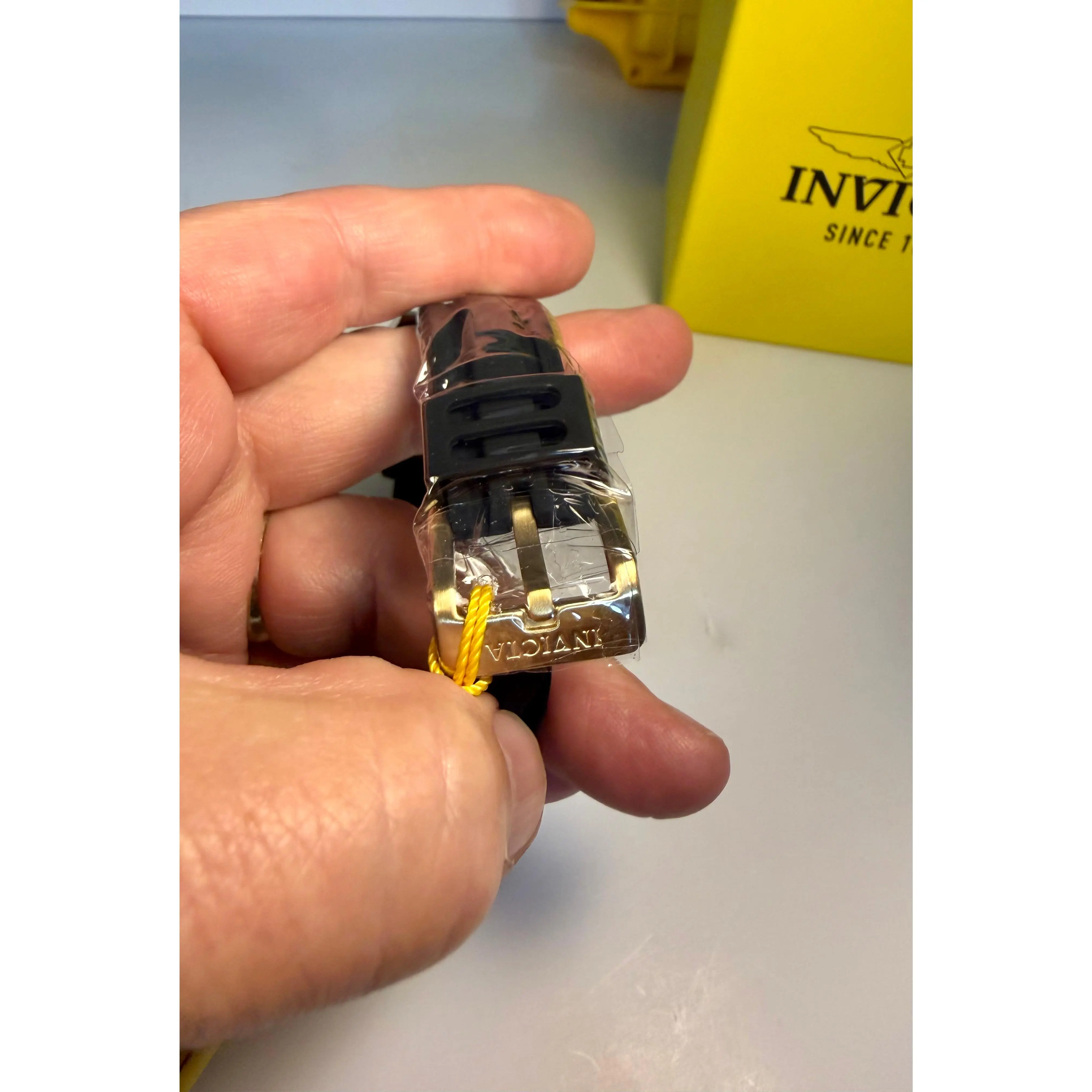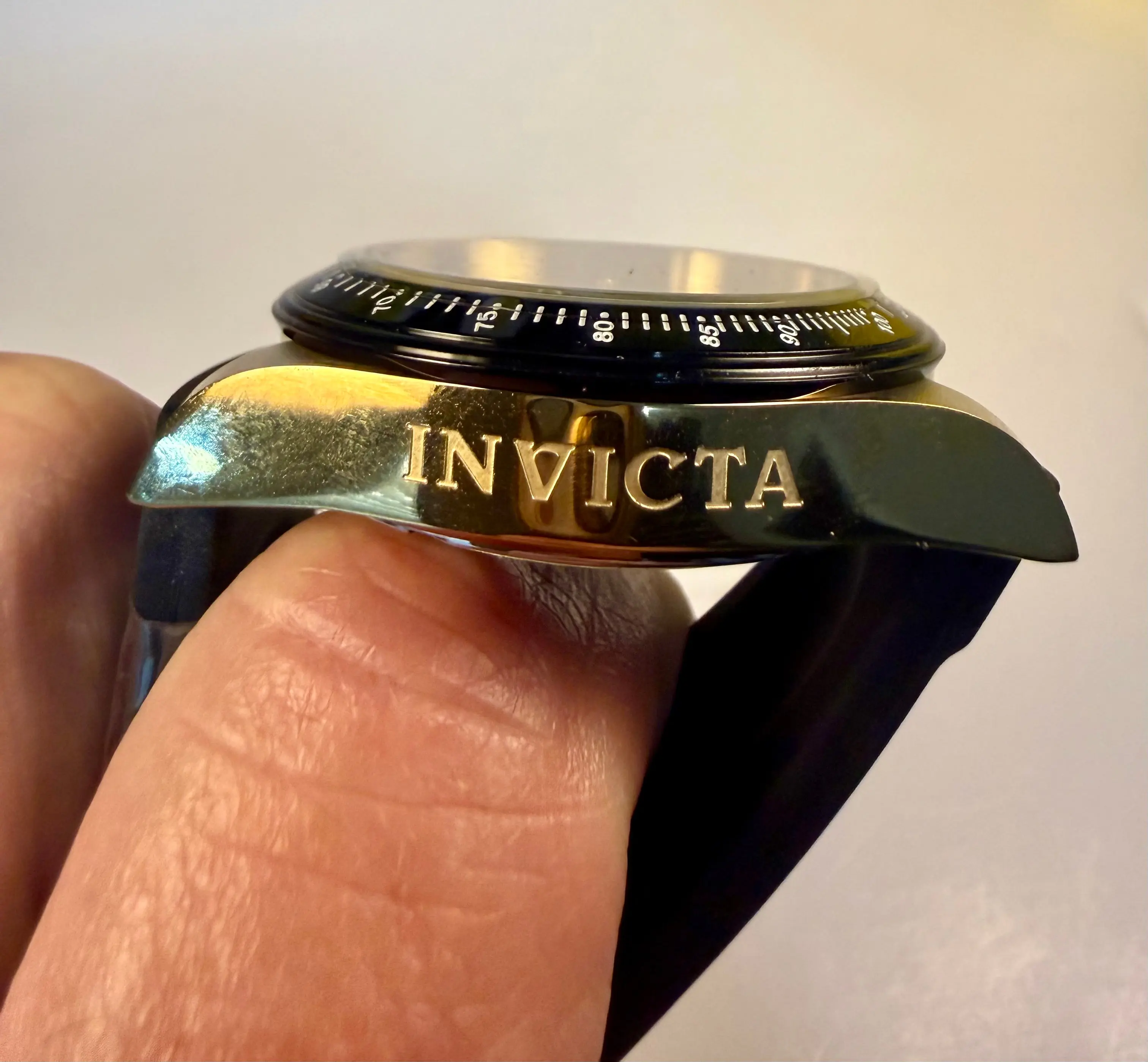 ·Substantial 20mm Gold-Tone Stainless Steel Bracelet with a secure diver's safety clasp.