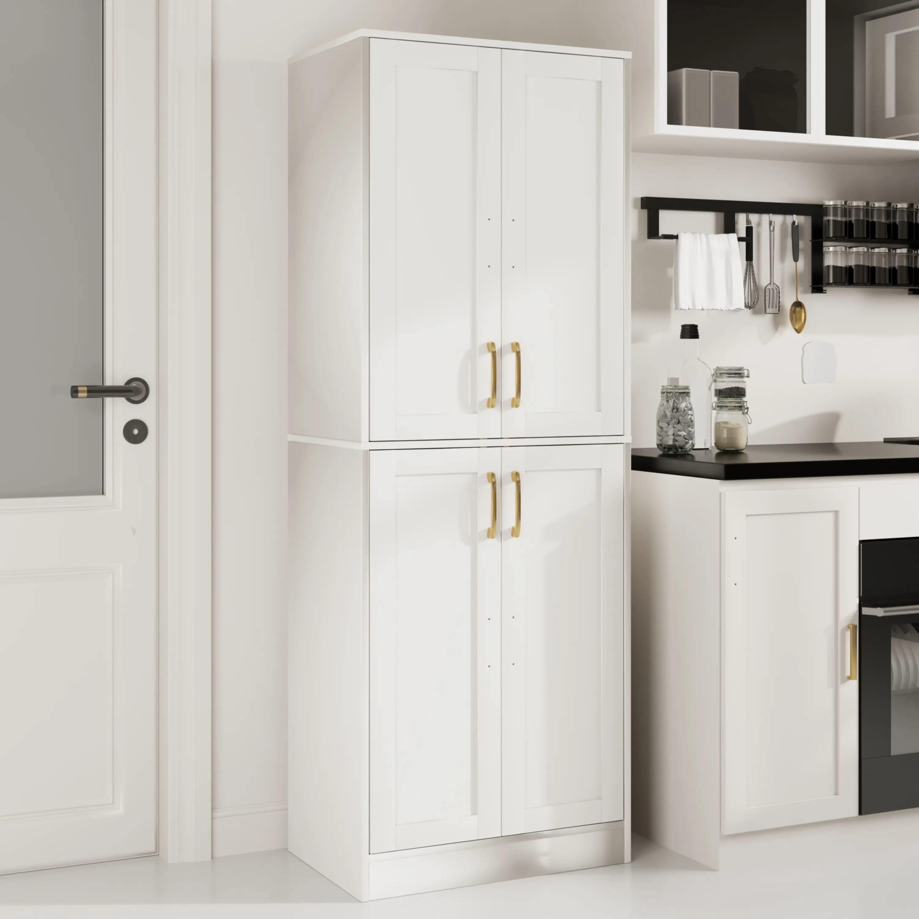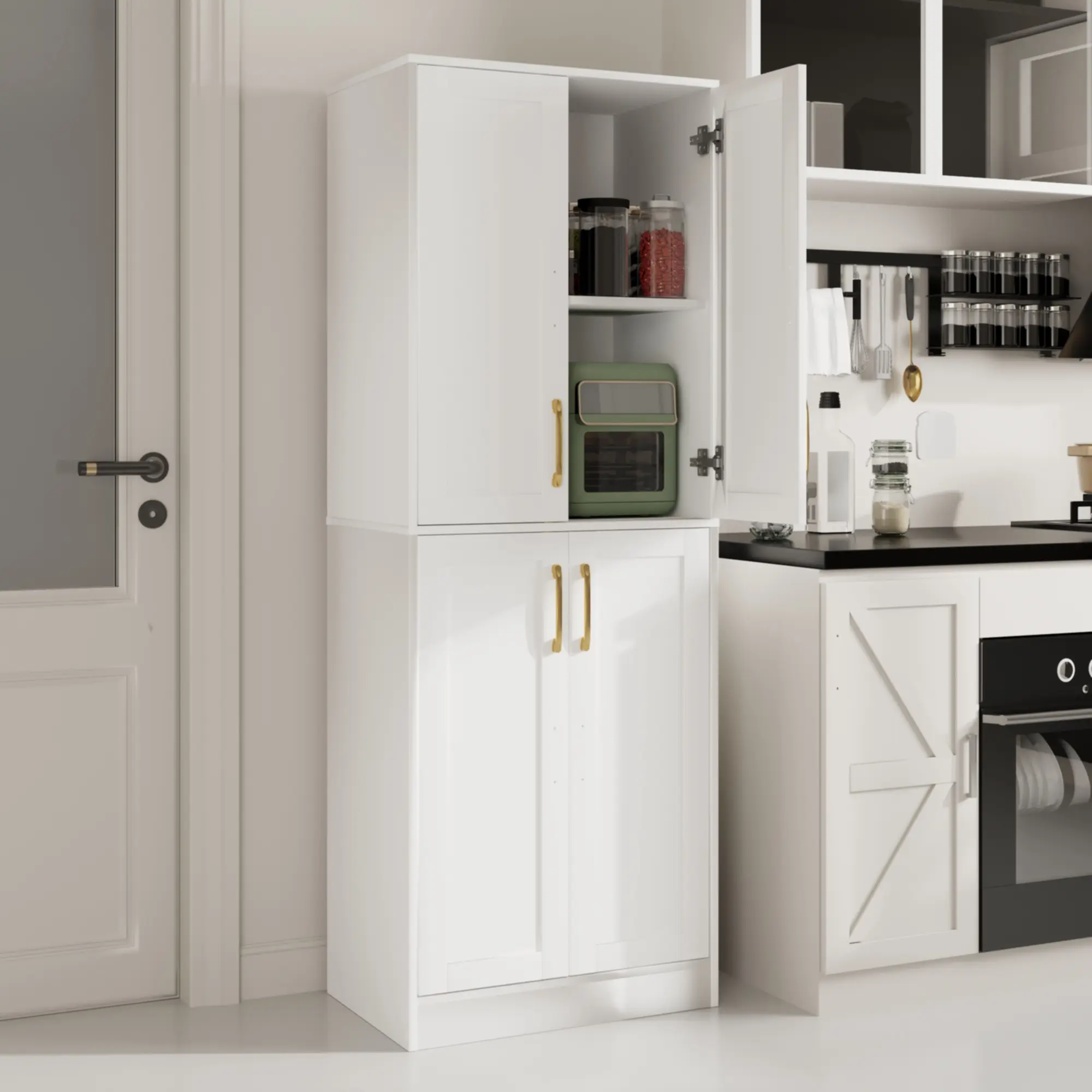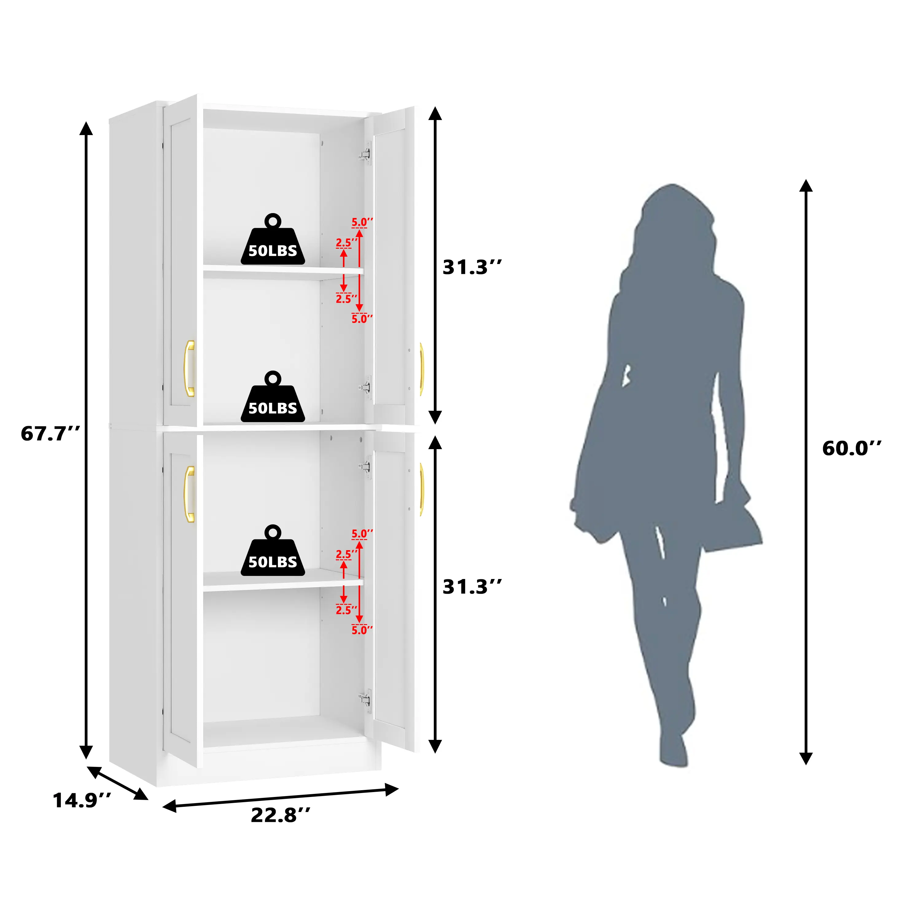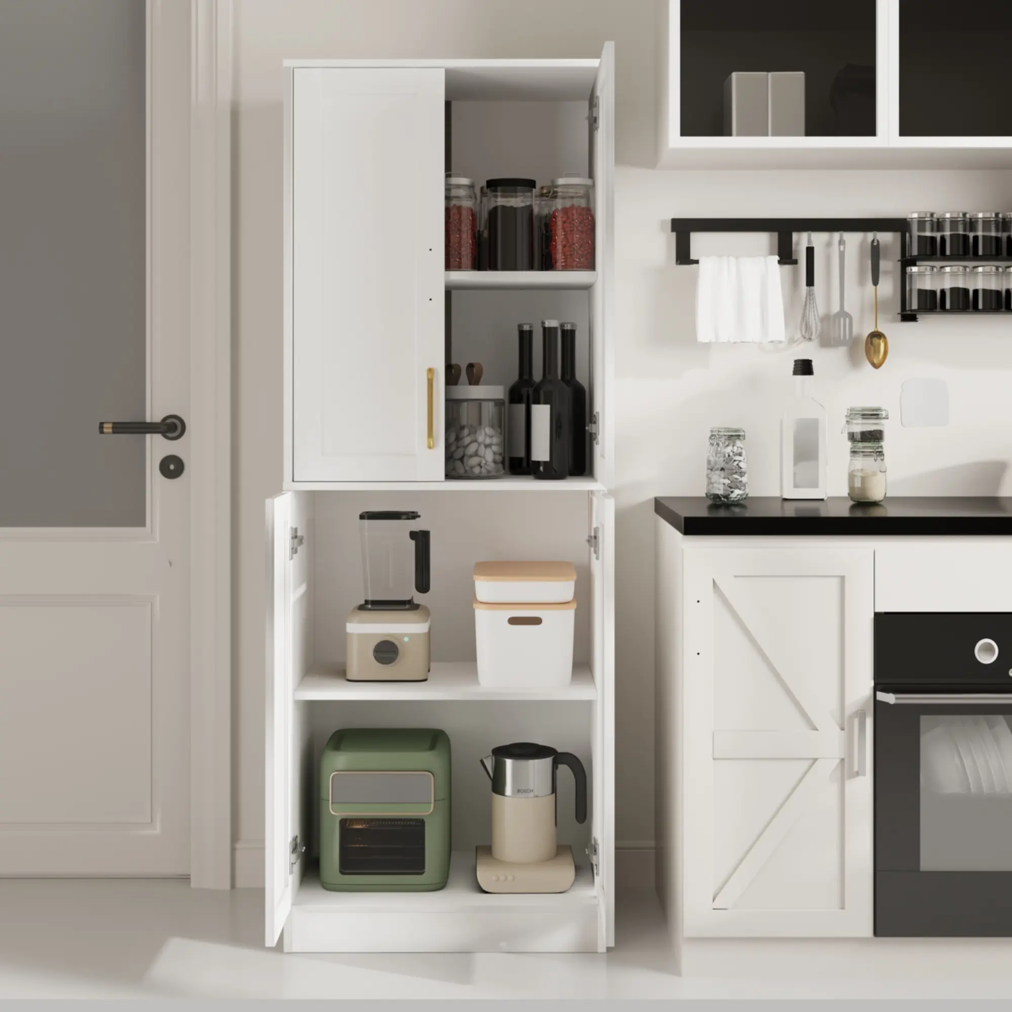 60.6" Tall Kitchen Pantry, Farmhouse StorageCabinet With Adiustable Shelves, Farmhouse PantryCabinet With 4 Doors, For Kitchen, DiningRoom, Living Room Furniture Organizer