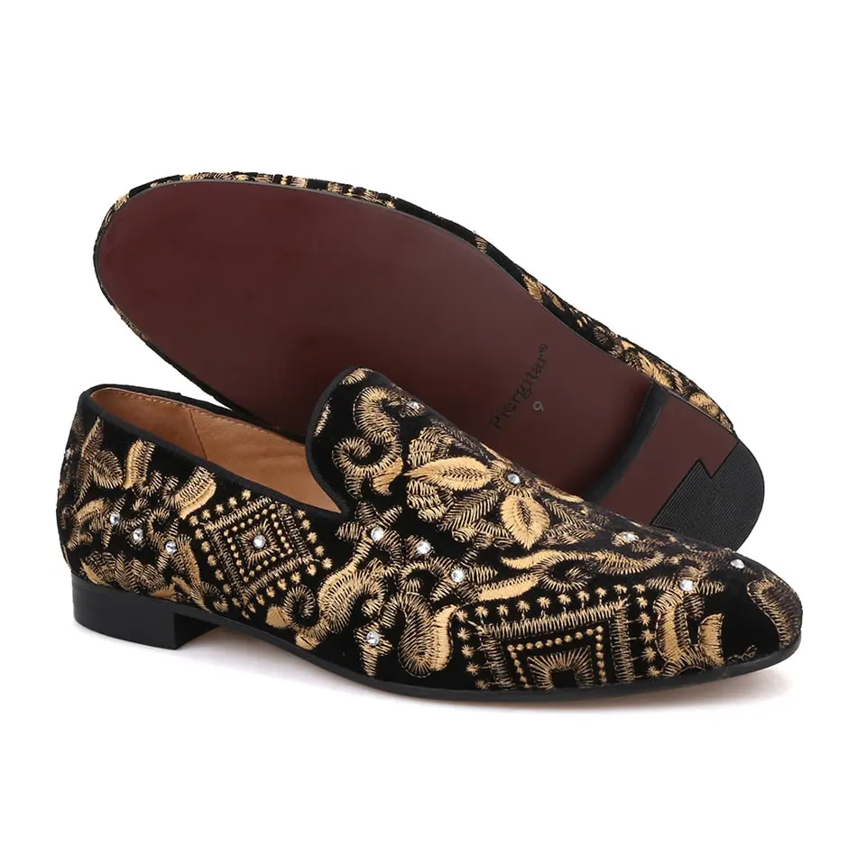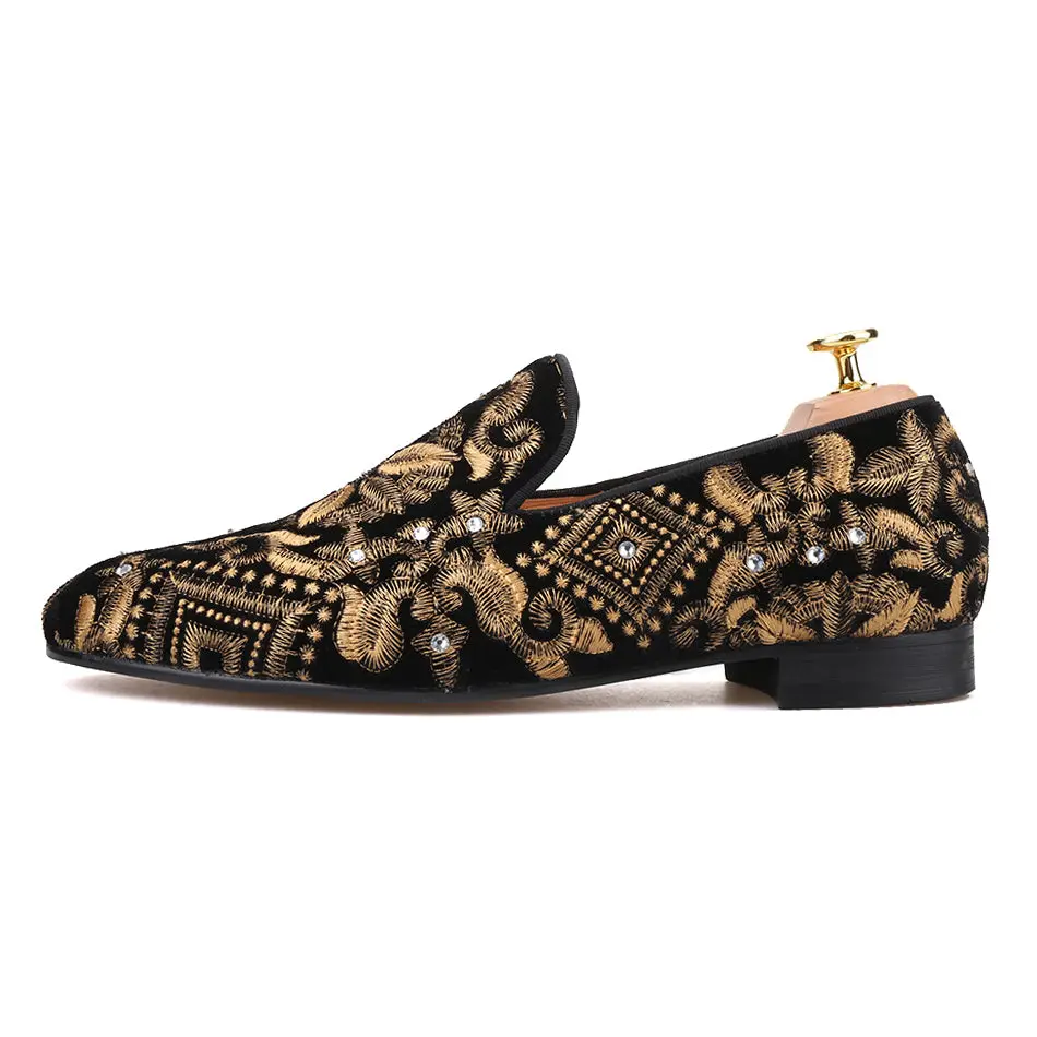 OneDrop Men Handmade Dress Shoes Gold Embroidery Party Wedding Prom Loafers