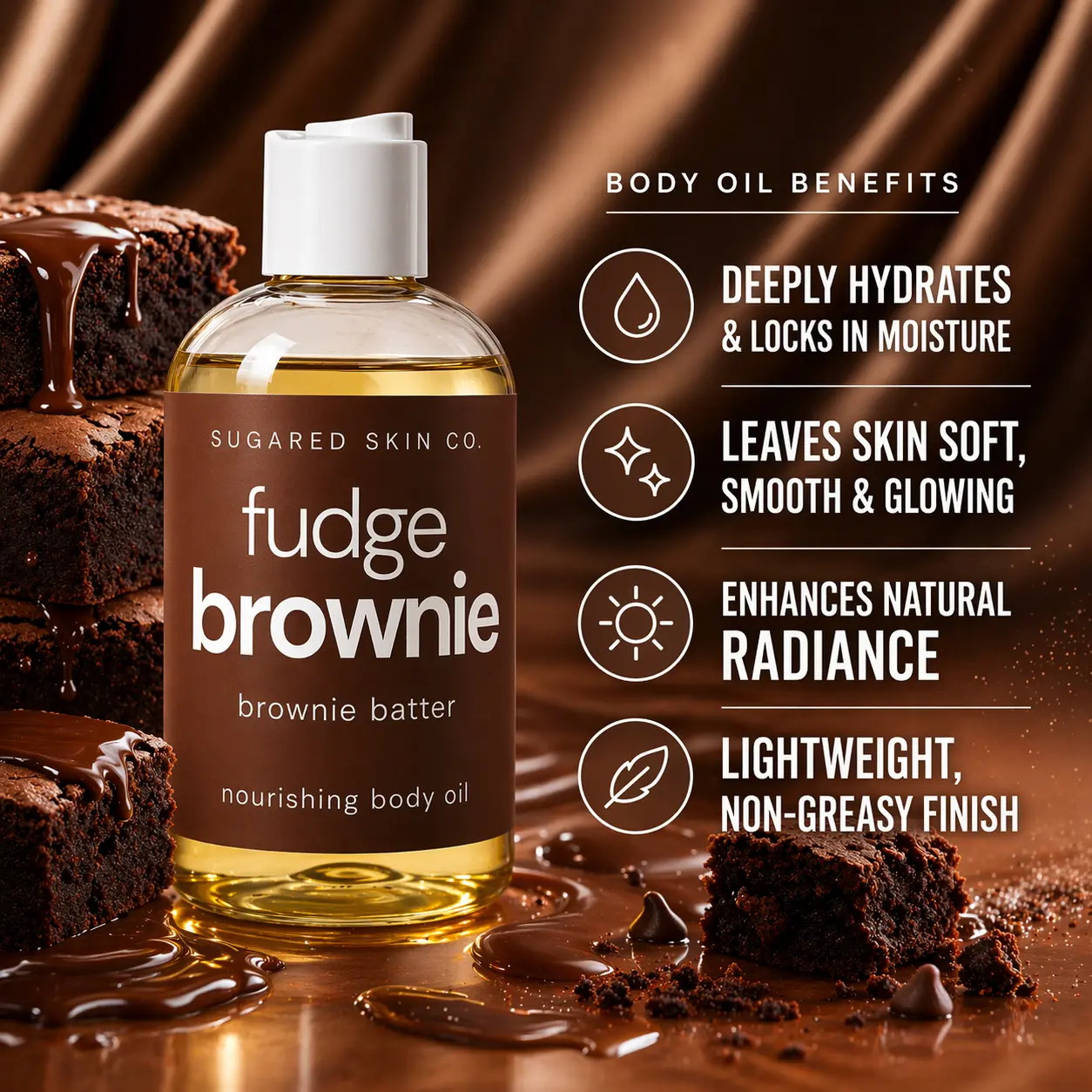 Deep cocoa. Sweet sugar. A warm, fudgy finish that wraps around your skin like the most indulgent dessert you've ever had. This ultra-nourishing body oil sinks in instantly — leaving behind nothing but impossibly soft, glowing skin and a rich chocolatey scent so bold and irresistible it stops people mid-sentence.