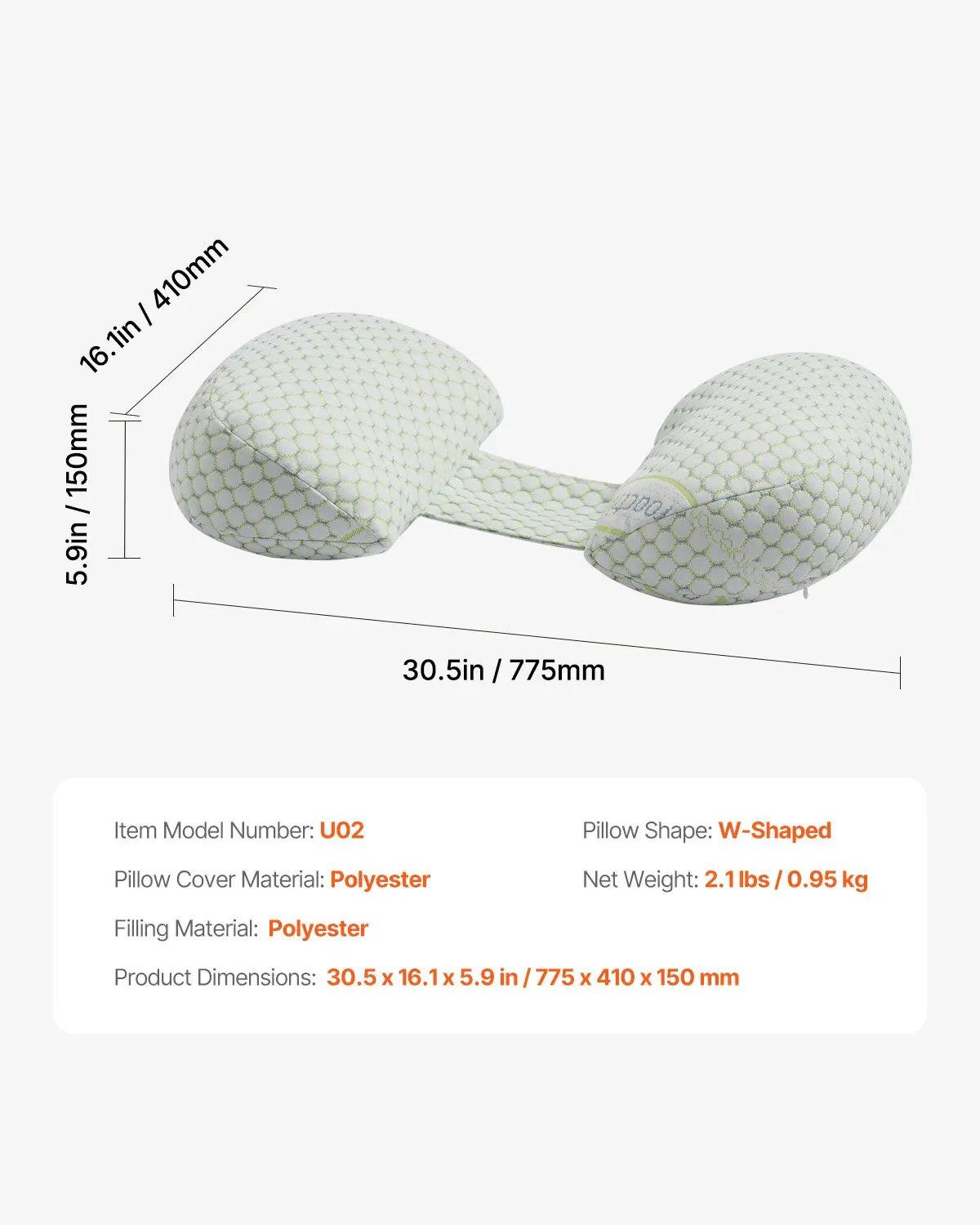 Sleep-supporting wedge designed to cradle belly, back, and hips for side-sleep comfort. This W-shaped pregnancy wedge pillow features plush polyester fiber fill that adapts to your body, plus a breathable, removable cover for easy washing. Compact and lightweight for home or travel, it helps reduce pressure points and encourages more restful sleep through every trimester.