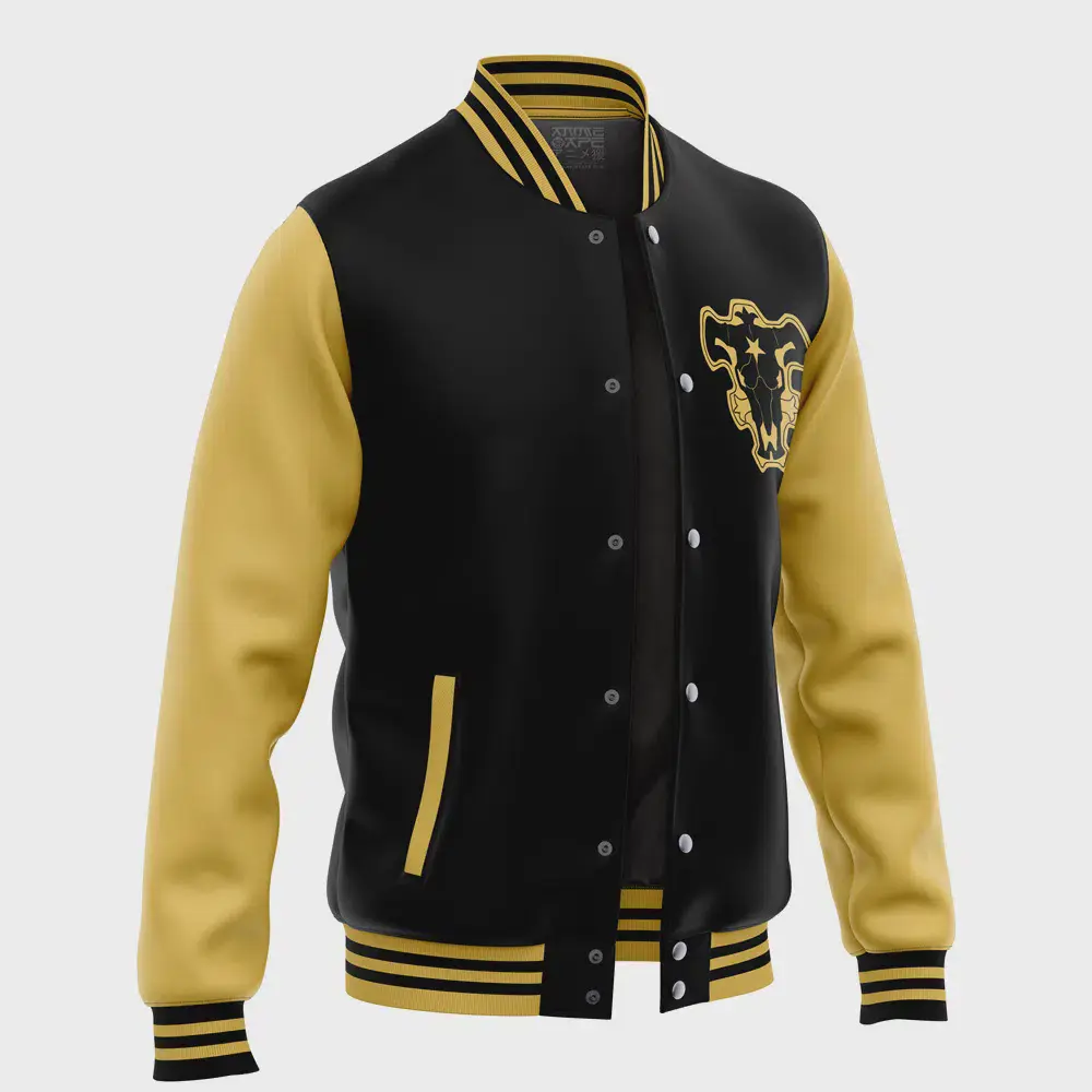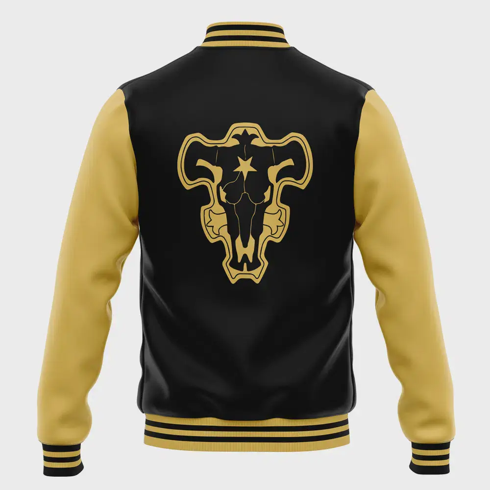 5. Full Black Bulls V1 Black Clover Baseball Varsity Jacket