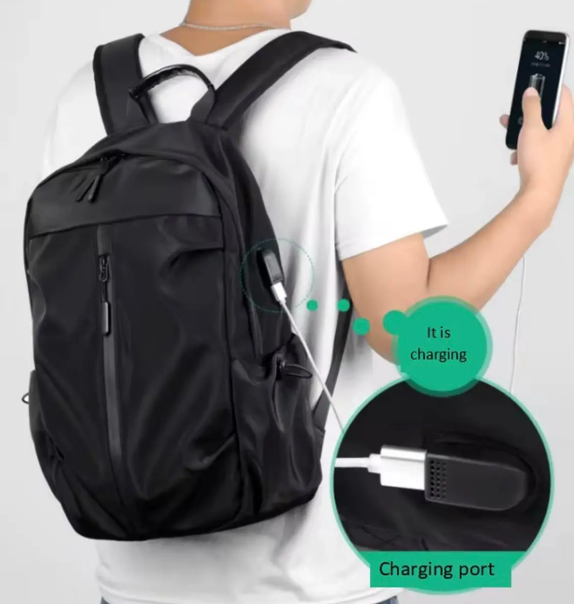 This medium-sized laptop backpack, measuring 45 x 35.5 x 15 cm, features a built-in USB port for convenient charging on the go. Designed for functionality, it accommodates various laptop sizes while ensuring easy access to devices, enhancing portability and productivity for daily users.