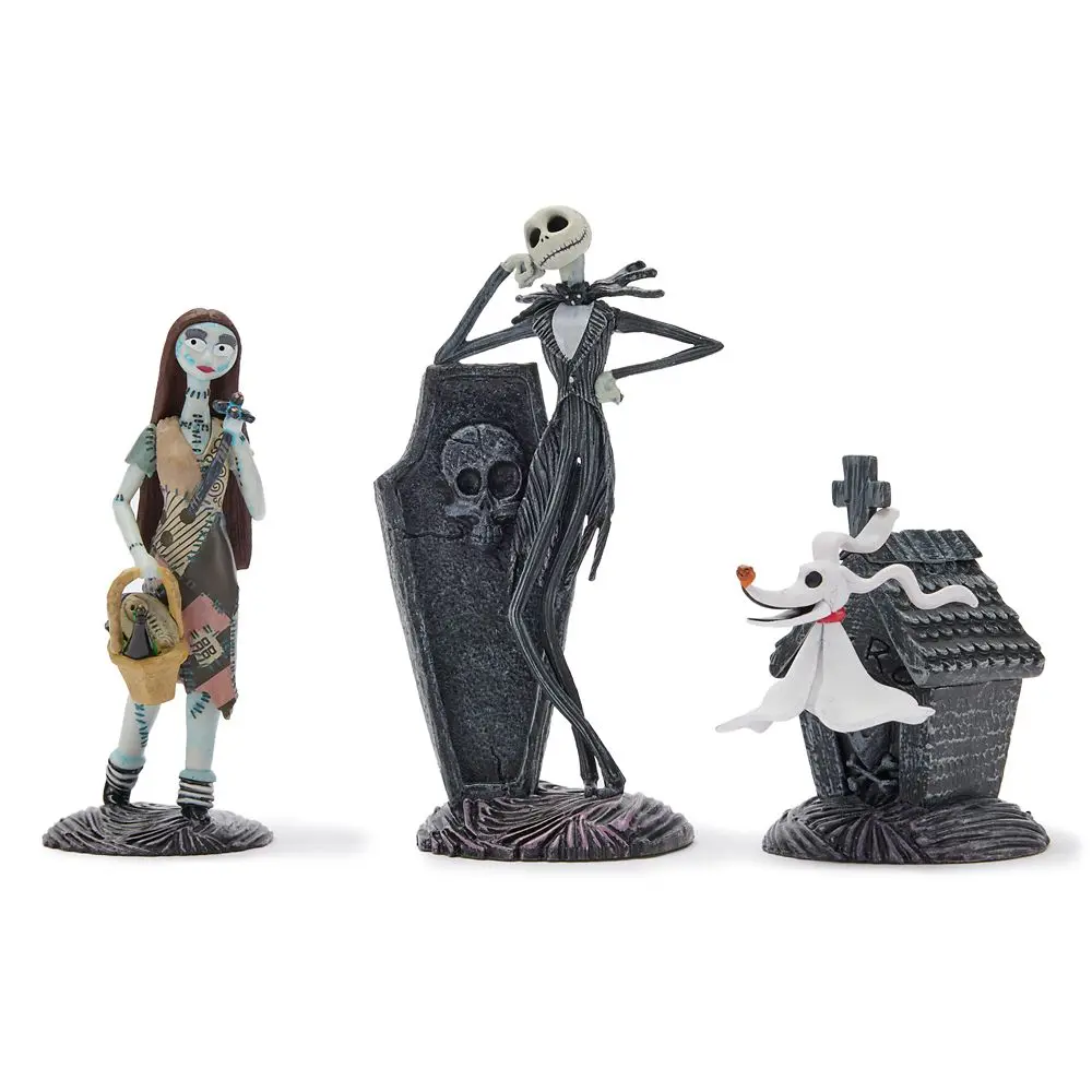 Enter a hallowed world of gothic holiday delights with this eight-piece deluxe figure play set featuring favorite, fully-sculpted friends and fiends from Tim Burton's The Nightmare Before Christmas. Presented in a new double-tiered window display box with scenic backgrounds, it will bring Halloween Town to life!