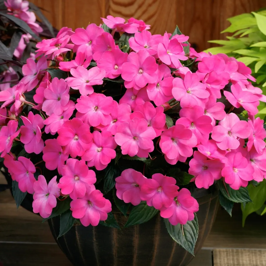 Impatiens SunPatiens® Vigorous Lavender Splash stuns with soft lavender blooms accented by deeper purple splashes for eye-catching contrast. This vigorous, heat-loving variety delivers bold, nonstop color from spring through frost in beds, borders, and large containers.