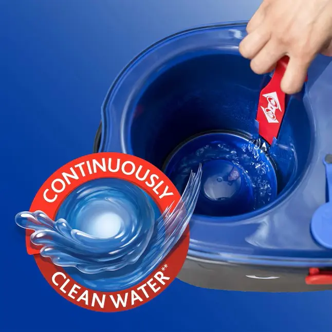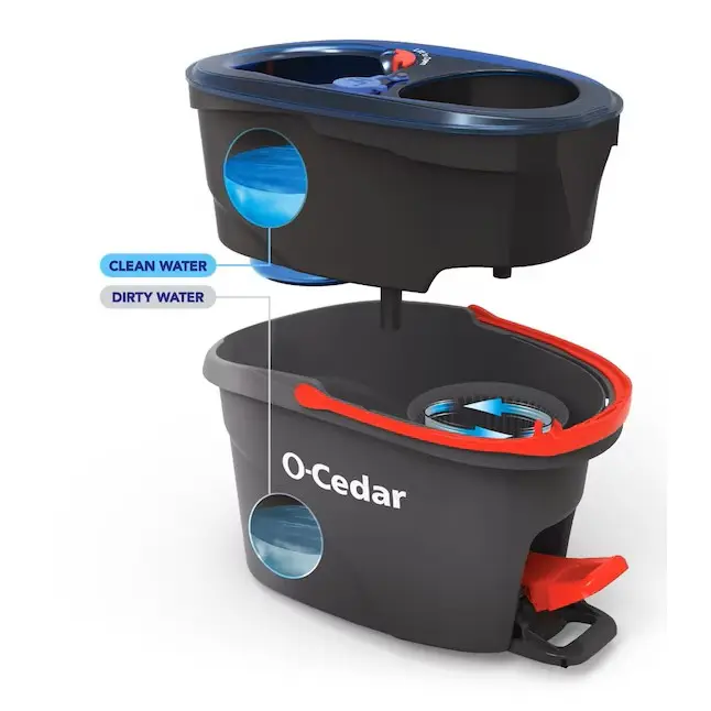 Upgrade your cleaning game with the O-Cedar EasyWring RinseClean Spin Mop System. Its revolutionary dual-chamber bucket features separated clean and dirty water tanks, making it easy to continuously clean with clean water. So, you never have to mop with dirty water again. What’s more, the microfiber mop head removes over 99%of bacteria with just water.