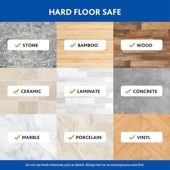 Safe for all hard floor surfaces, including hardwood, tile, laminate, vinyl and more
