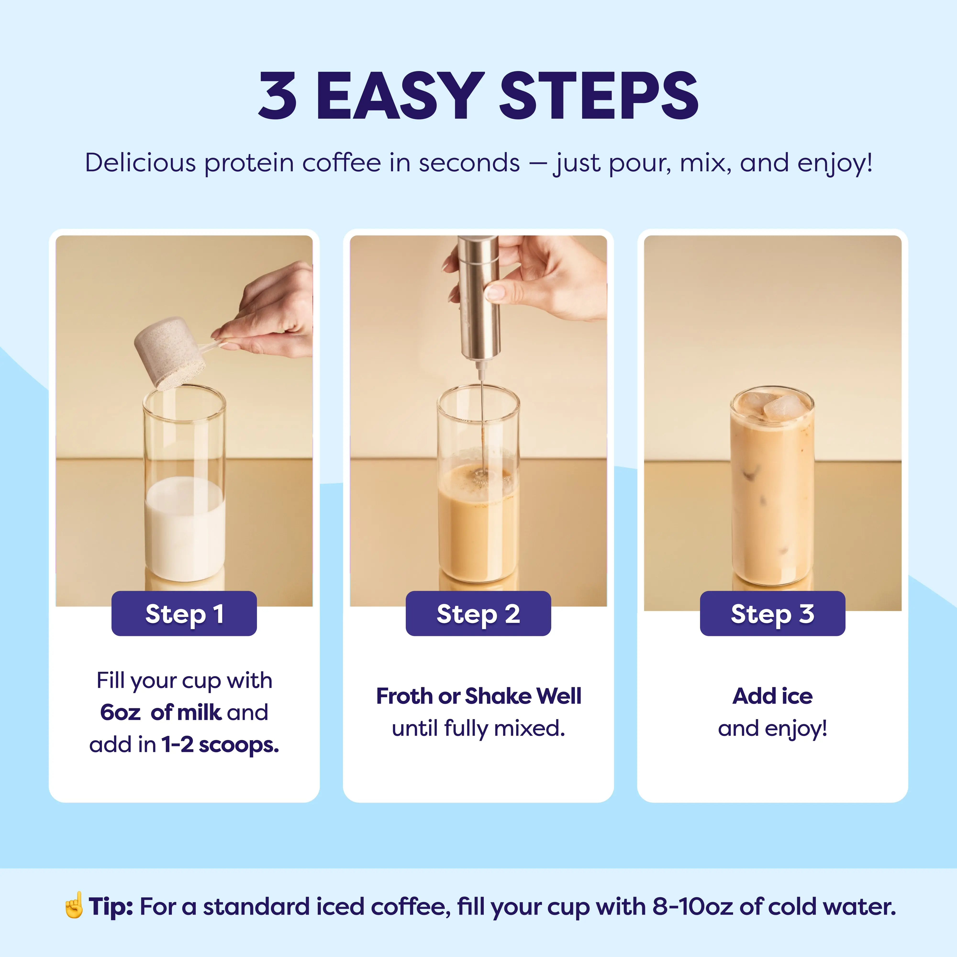· Your Goals, Made Easy - Our mornings are valuable and the right morning routine makes your health, fitness, and wellness goals easier. Say goodbye to long coffee lines because we took the two most important ingredients in our day (coffee and protein) and created a super tasty one scoop protein coffee beverage. Our convenient packaging makes it so that you can take your instant protein coffee with you anytime, anywhere!