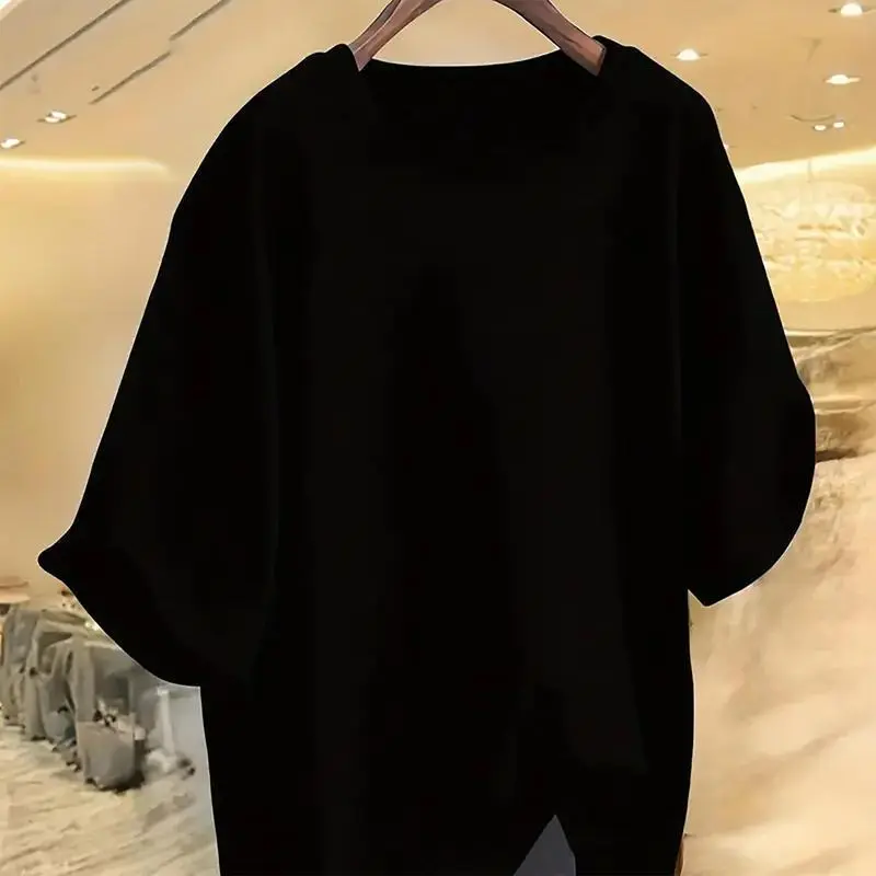 Shewin 2026 Spring/Summer Cozy Oversized Waffle Knit V-Neck Top Women's Short Sleeve Pullover Winter Layering Plus Size for Daily Wear Beach Tee