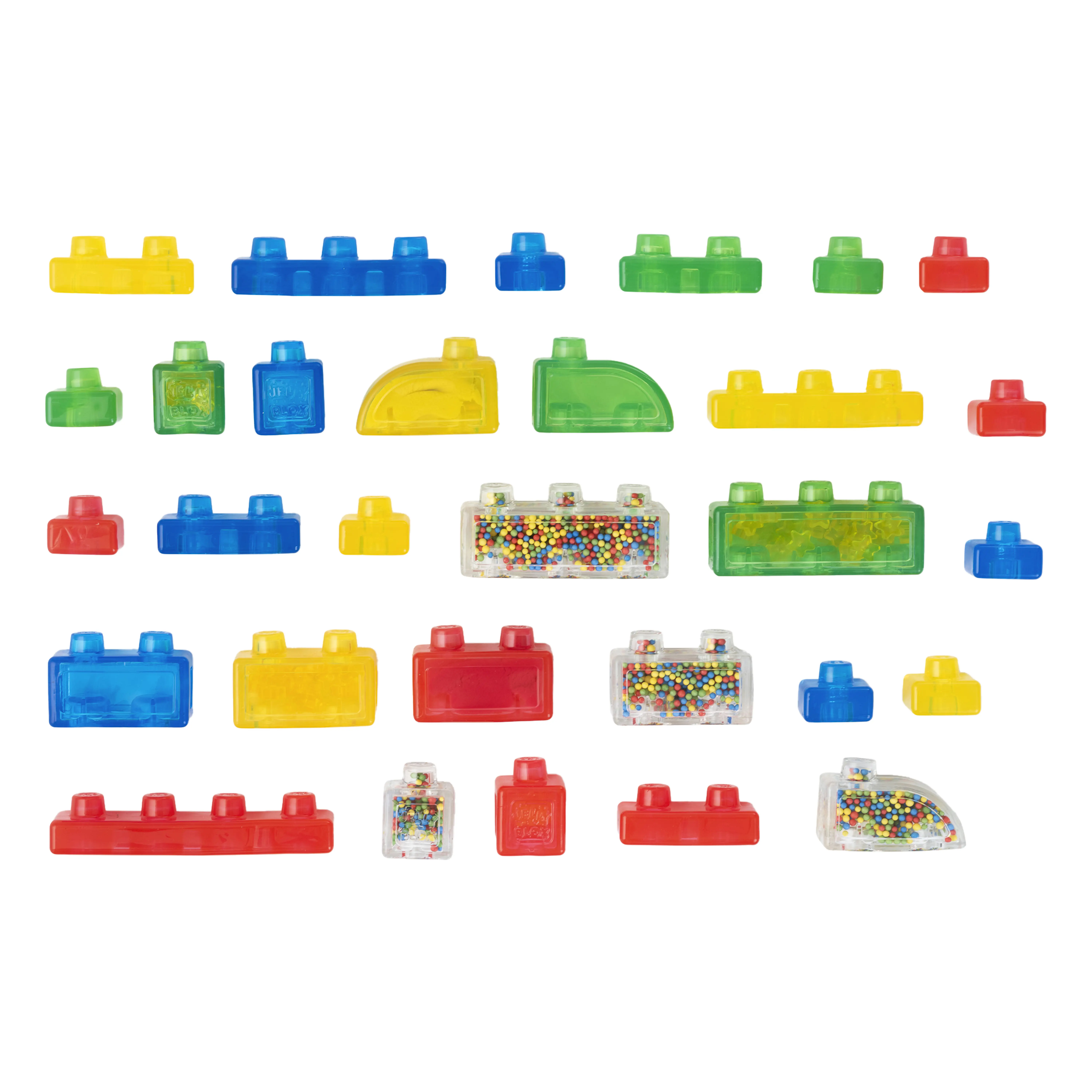 ·LEARN AND PLAY: Jelly Blox supports key developmental milestones and contains several special blocks filled with super sand, foam beads, mini stars and mini bricks for additional sensory and tactile fun!