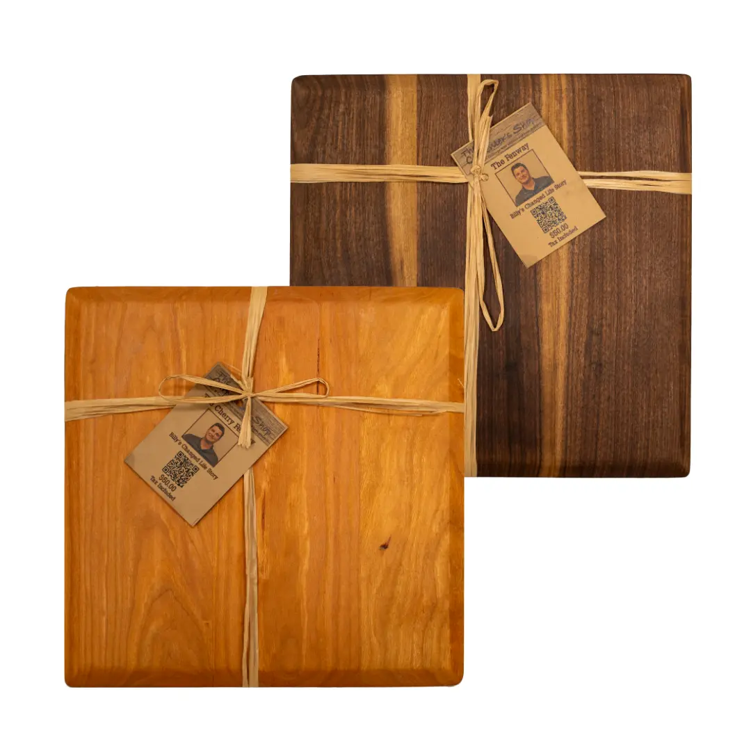 Designed for both everyday use and presentation, The Fenway is a versatile square board crafted from premium American Black Walnut or American Cherry. With its clean lines and rich natural tones, it adds warmth and character to any kitchen or table setting.
