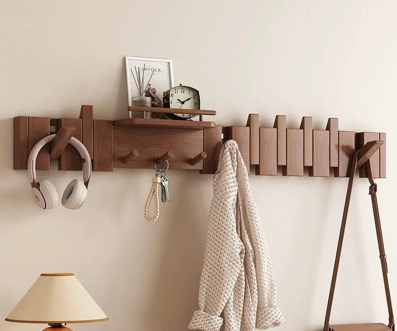 Upgrade your home organization with a piece that blends contemporary art with daily utility. Inspired by the rhythmic layout of piano keys, this wall-mounted rack features foldable hooks and a built-in top shelf, offering a sleek, minimalist solution for entryways, hallways, or bedrooms.
