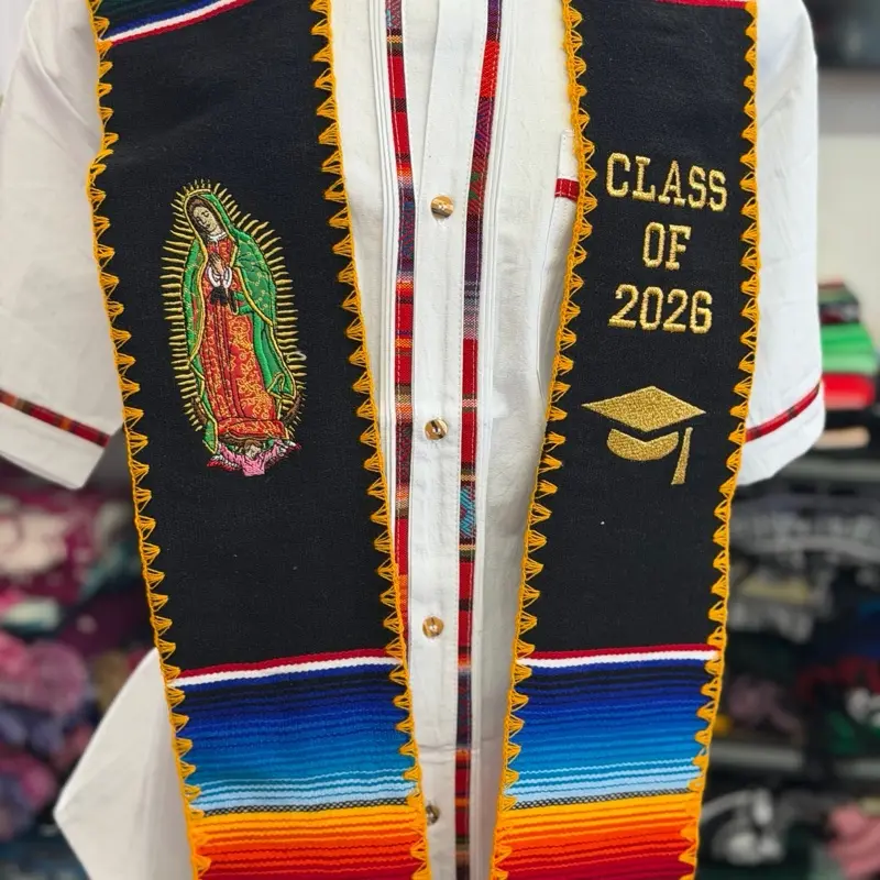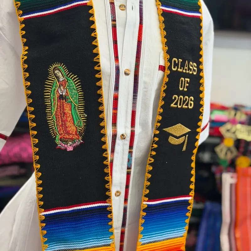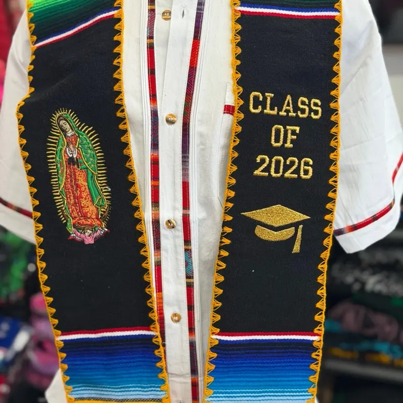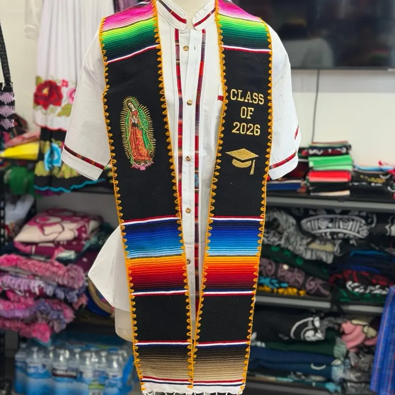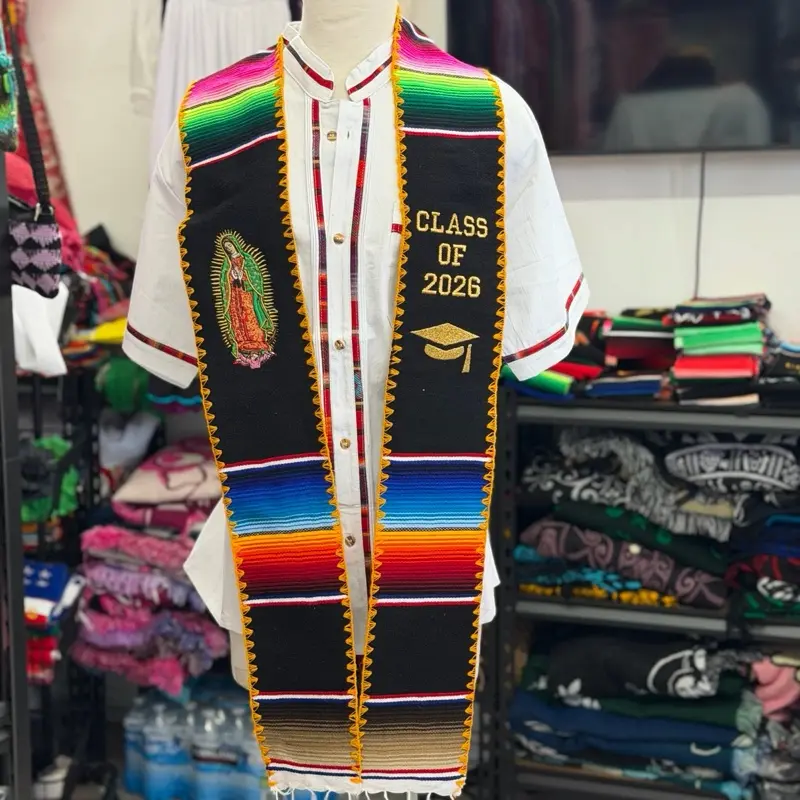 The Sarape blanket stole handmade in Mexico they are of thick woven thread and perfect addition to any graduation outfit to show your Latine Ethnicity Roots and pride.