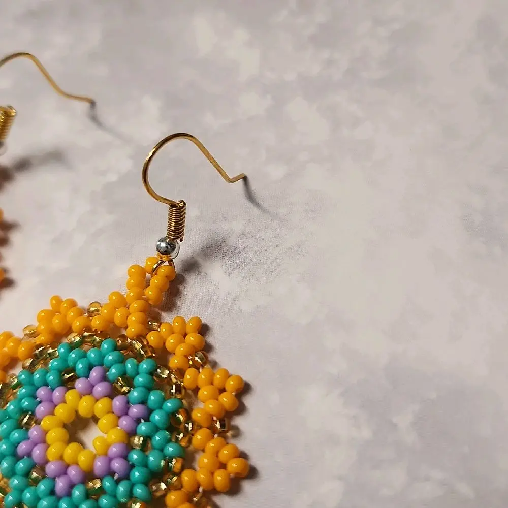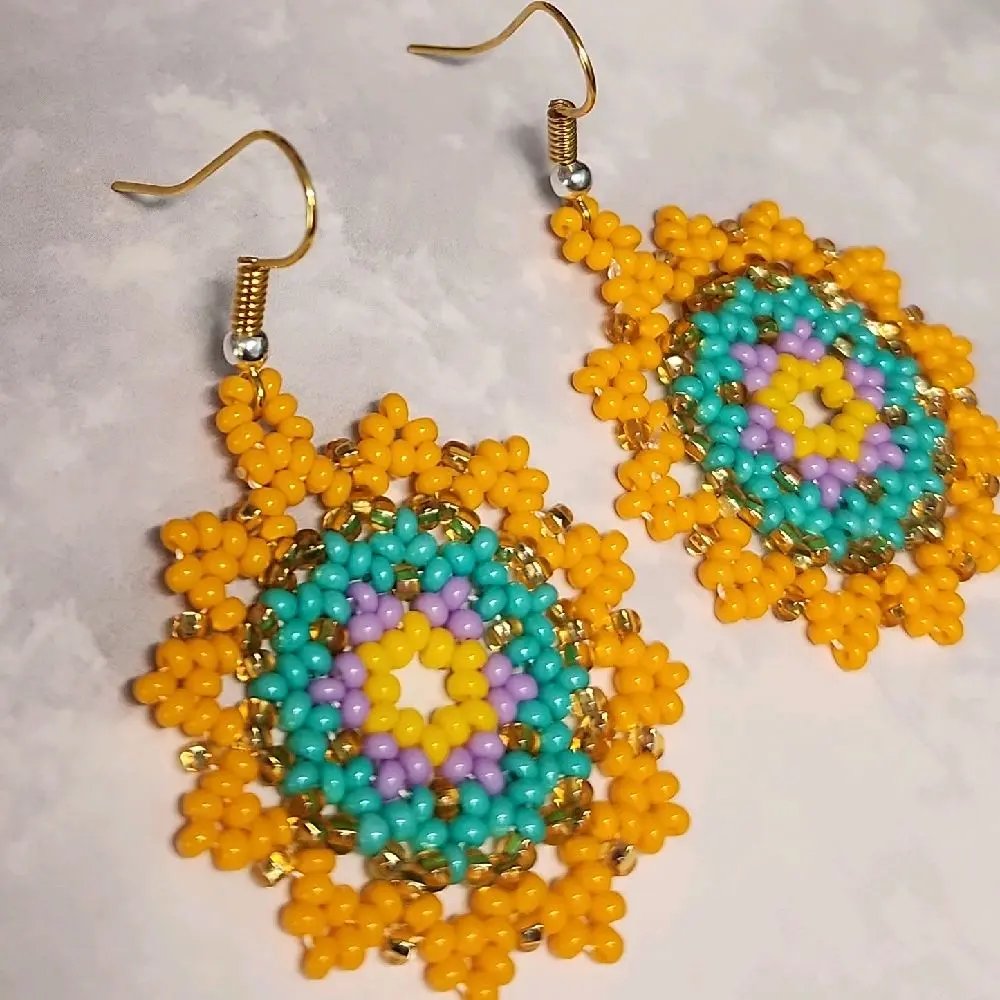 Beaded Orange Flowered Earrings with Vibrant Colors and Intricate Design