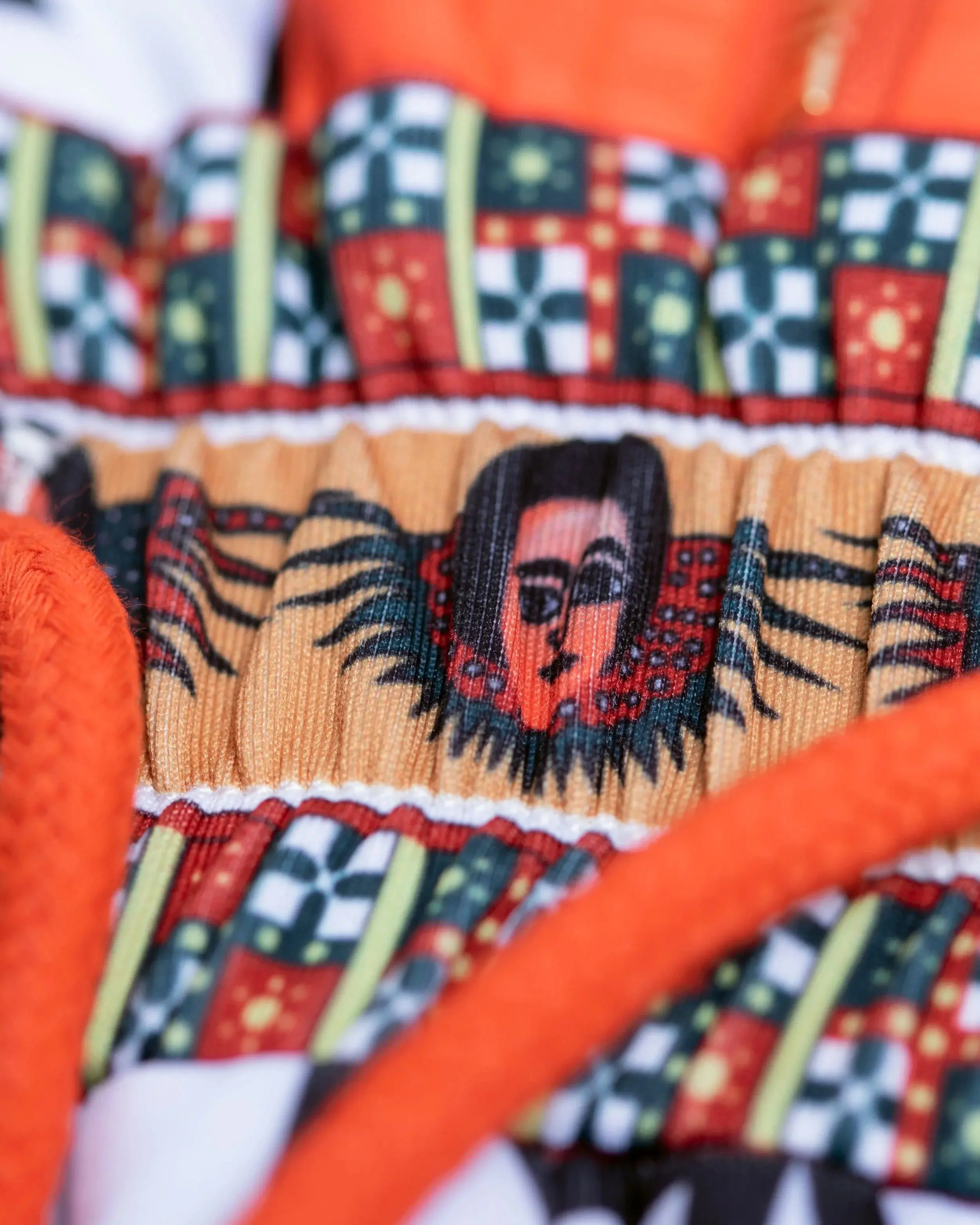 A romper for anyone who knows that confidence is making people watch you strut. The YEMA Hawi Fikir Romper brings high fashion and street swagger to one-piece dressing with 17th-century Abyssinian angel details, orange chest pockets, and the kind of roomy comfort that proves style and ease aren't opposing forces.