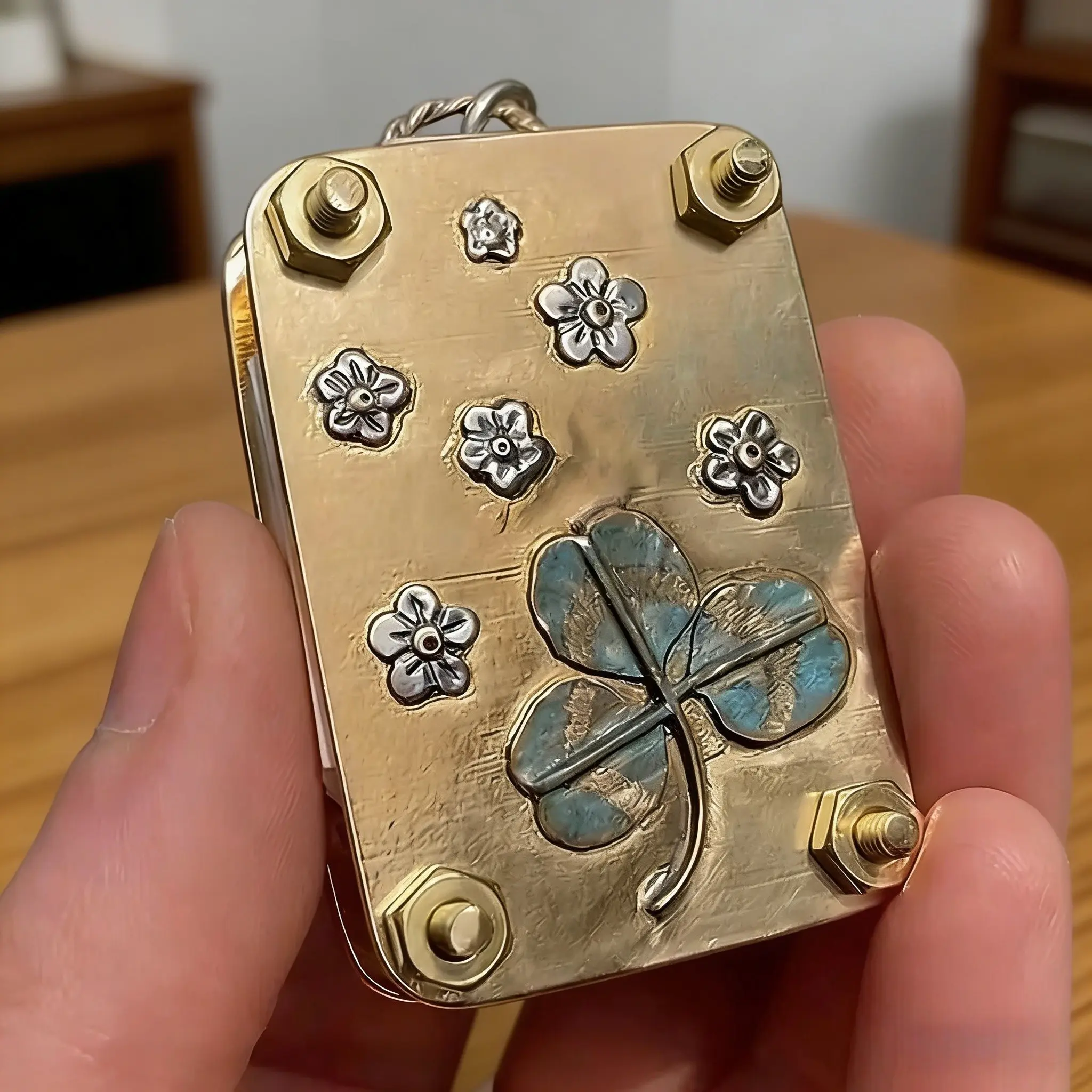 This is a really cute little box. It has a mirror inside and also there’s a place you could put things like maybe pills or something small like that maybe a tiny key or anything that has a small detail. It has a nice mirror inside and the clap works really well. I also love the detail.