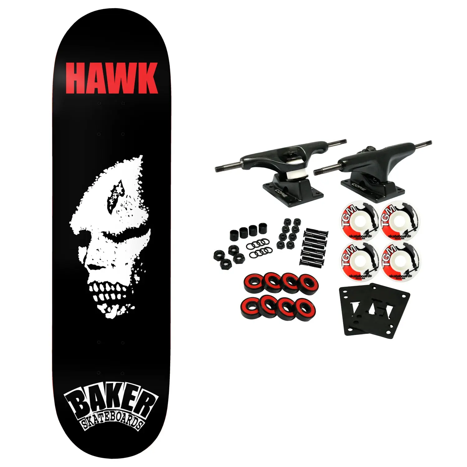 Constructed with Premium 7-Ply North American Maple. The Baker OG Shape features mellow concave for quick response. This board measures 8.38" x 32.25" with a 14.5" wheelbase. Comes with Core trucks, 52mm TGM logo wheels, Amp abec 5 bearings, Black Diamond Griptape, risers, and hardware. Core trucks are light weight and feature heavy duty aluminum with grade 8 steel kingpins and axles, as well as USA made bushings and pivot cups. 52mm 99A are the perfect wheels for both street and park skating. Like the name states, Amp bearings are stimulants for your wheels! Light synthetic oil, Delrin Crowns, and Rubber Serviceable Shields are a few of the things that makes these bearings one of the best Abec 5 rated bearings on the market. Arrives un-assembled which allows for customization and a feeling of accomplishment. Skaters love building their boards! Easy to assemble!