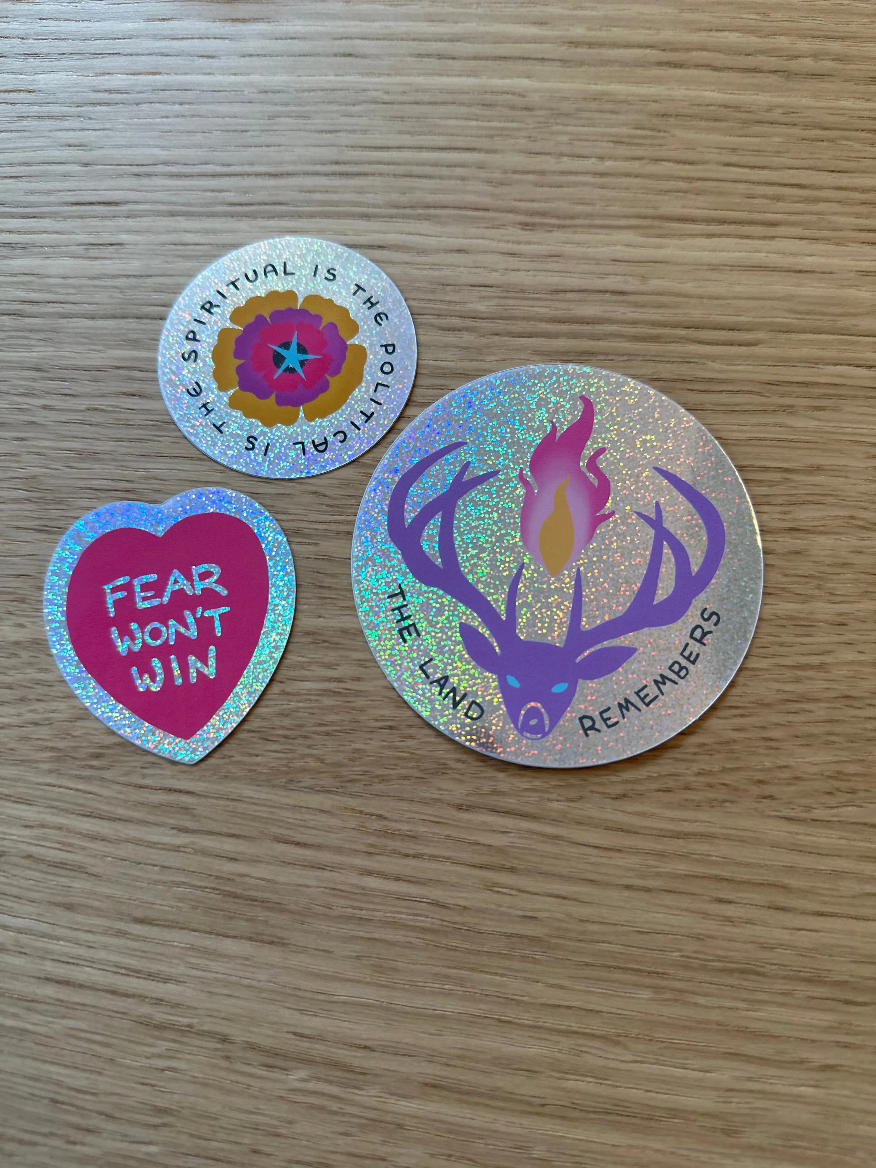 The Land Remembers glitter sticker.