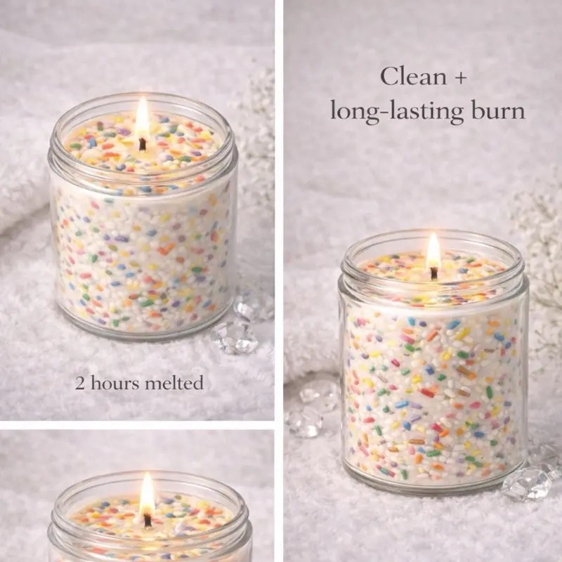 Soft Riot Candle Dessert-Inspired Luxury Confetti Cake Dream Candy Rush Aroma Decor Hand-Poured Clear Glass Jar With Colorful Sprinkle Embeds