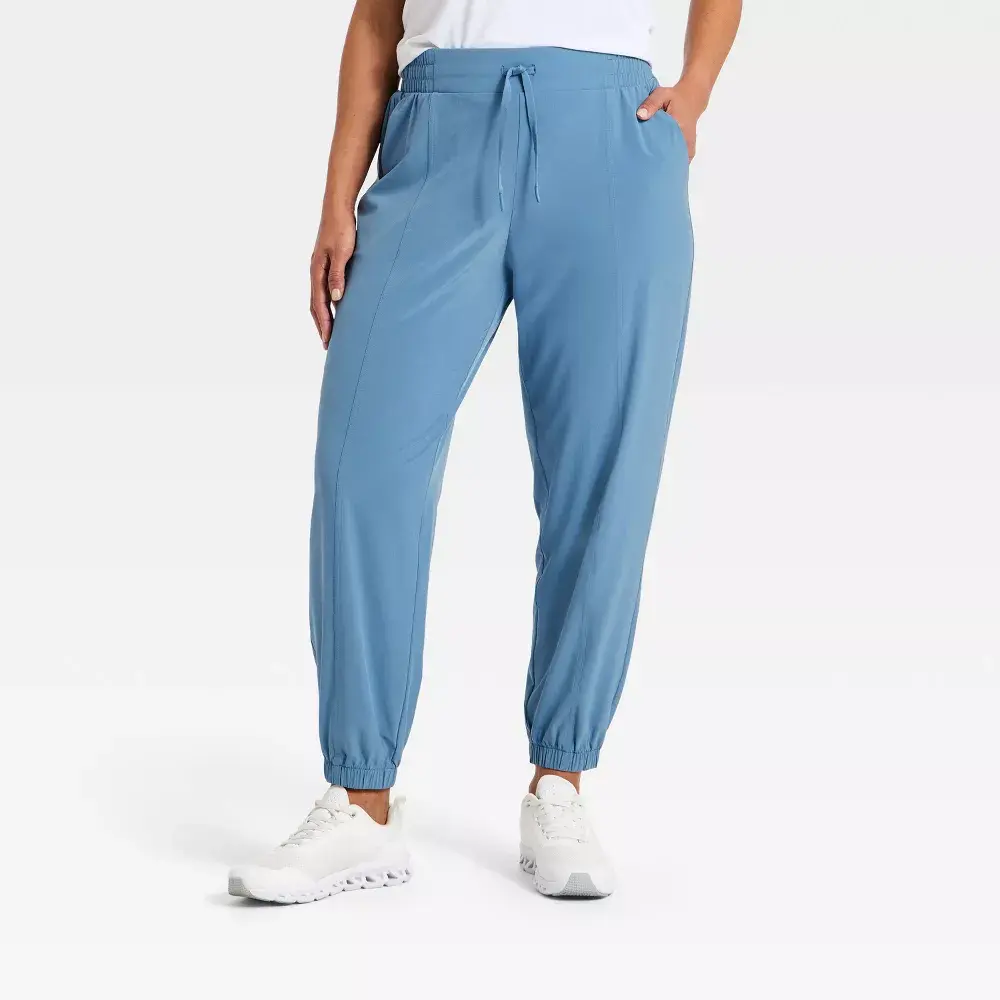 Mid-rise joggers designed with an athletic fit, mid-rise cut and ankle length. Made of 4-way stretch knit fabric for flexible wear that moves and stretches with you. Boast moisture-wicking and quick-drying properties along with a UPF 50+ rating to keep you feeling cool and dry while providing sun protection. Full elastic waistband with a drawstring offers a snug and customizable fit, while side zippered pockets provide hands-free convenience.