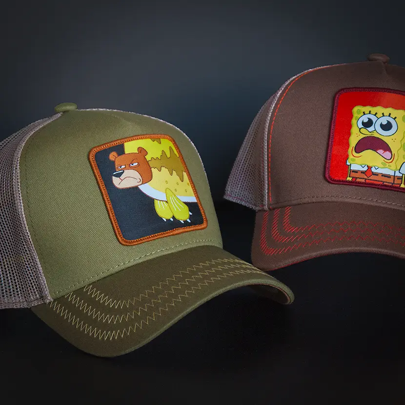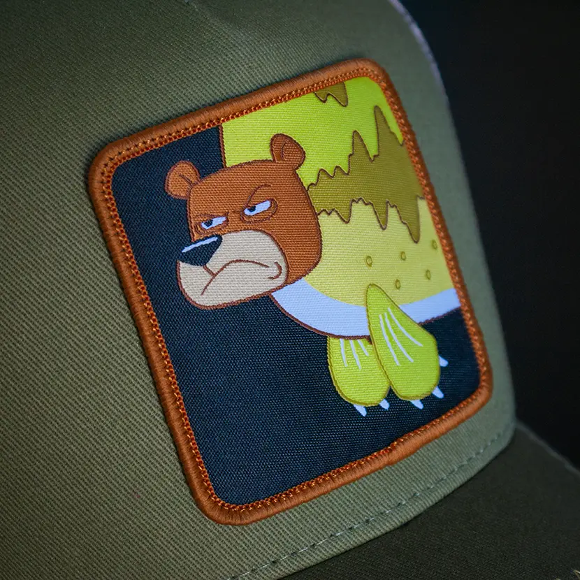 🚫 Don’t run, don’t scream, definitely don’t wave your arms—just throw on the Overlord x SpongeBob Sea Bear Trucker Cap and keep it safe in style. Featuring the dead-eyed fury of the infamous Sea Bear mid-charge, this cap is equal parts wilderness warning and Bikini Bottom folklore. With its swampy green crown, beige mesh, and a patch that means business, it’s the ultimate survival essential… for the cartoonishly cautious. 🌲📖