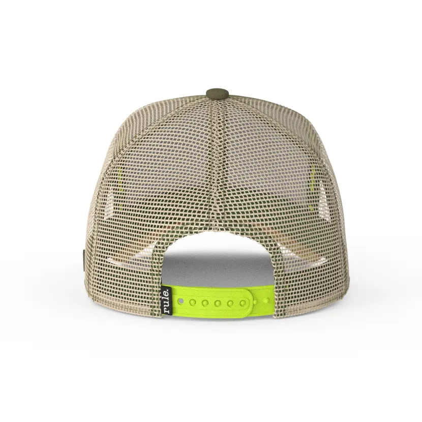 🫒 Olive green front, khaki mesh, and zigzag stitching that says “I know what I’m doing”