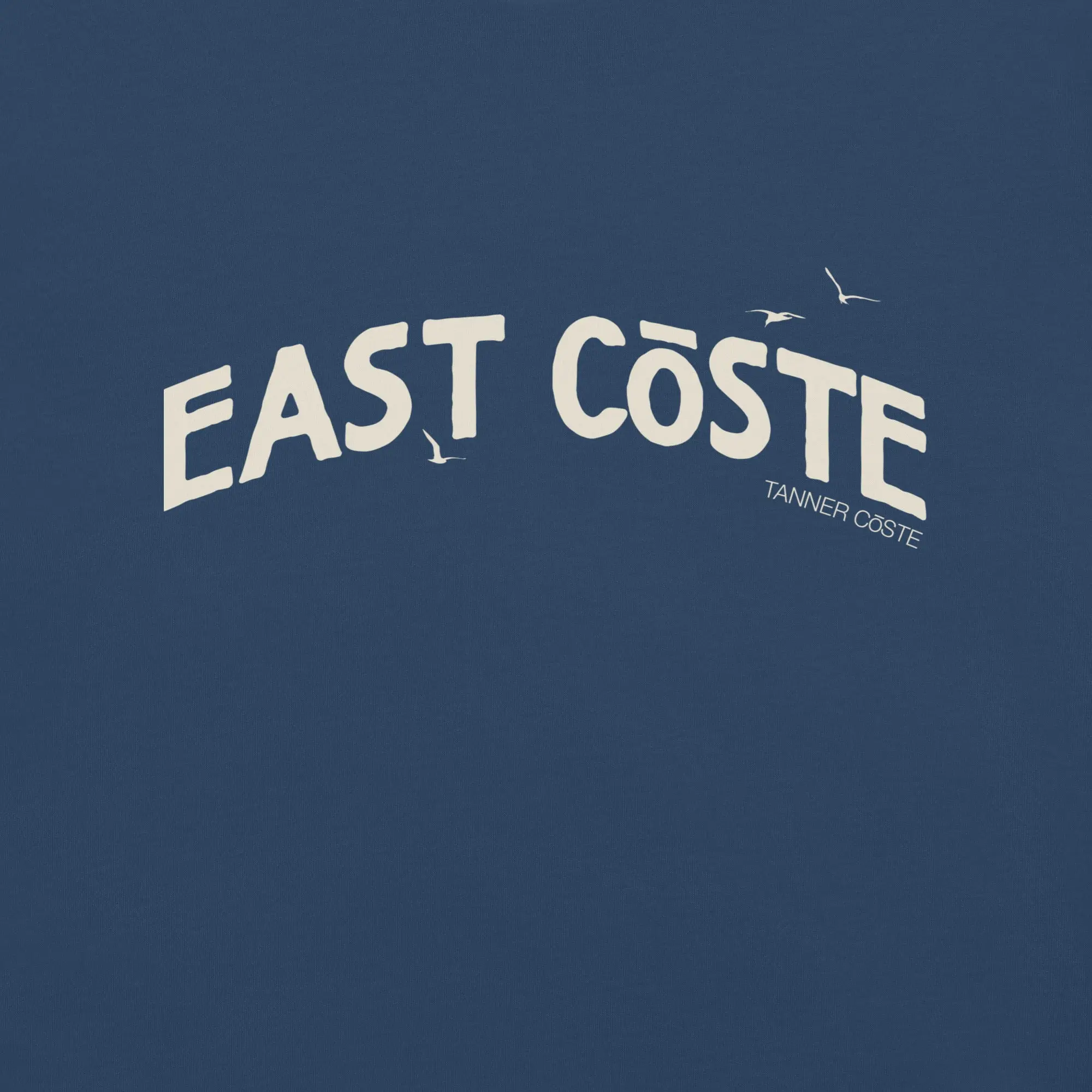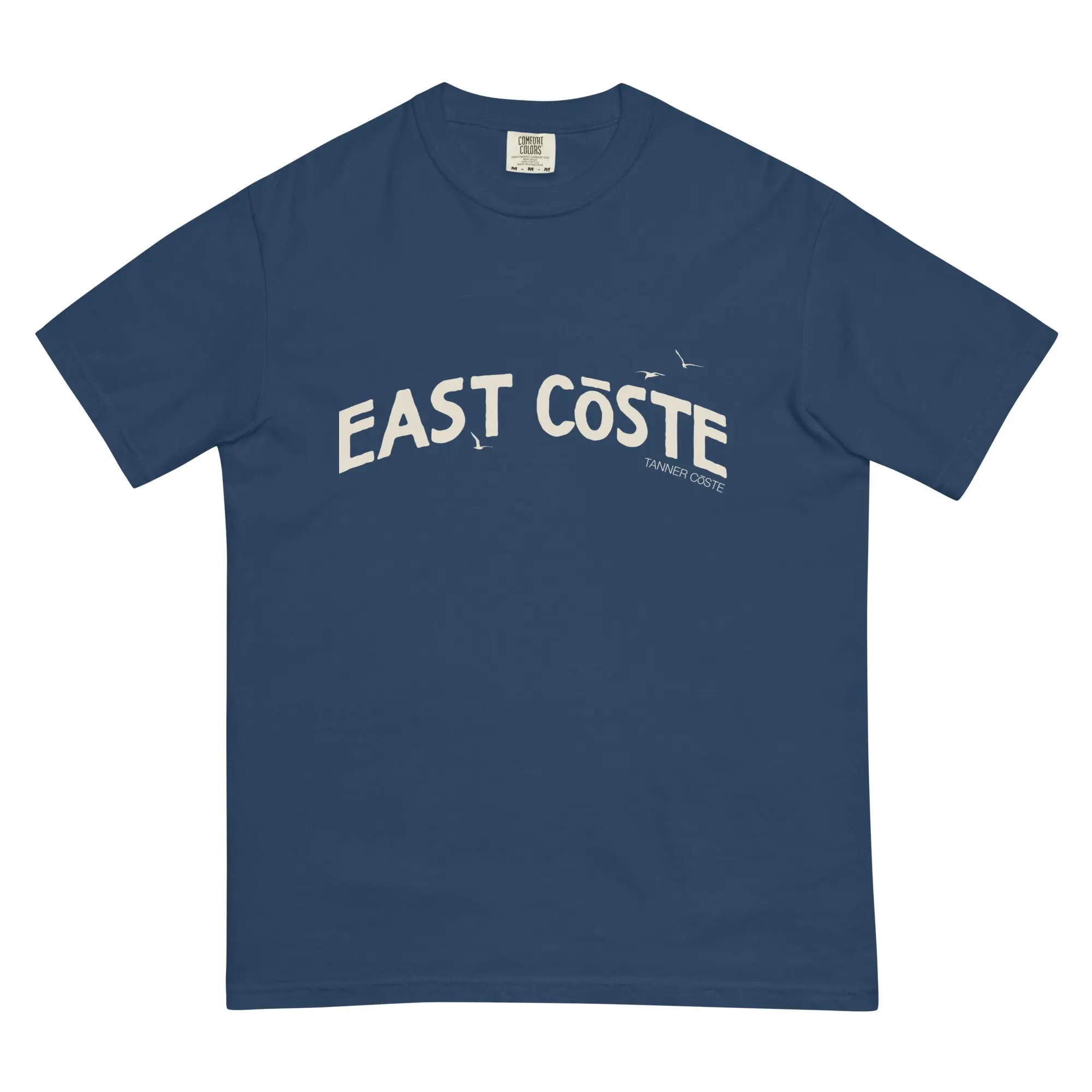 Timeless Design: Featuring the bold "EAST CŌSTE" print accompanied by graceful seagulls, this t-shirt captures the essence of the coast in a minimalist yet striking design.