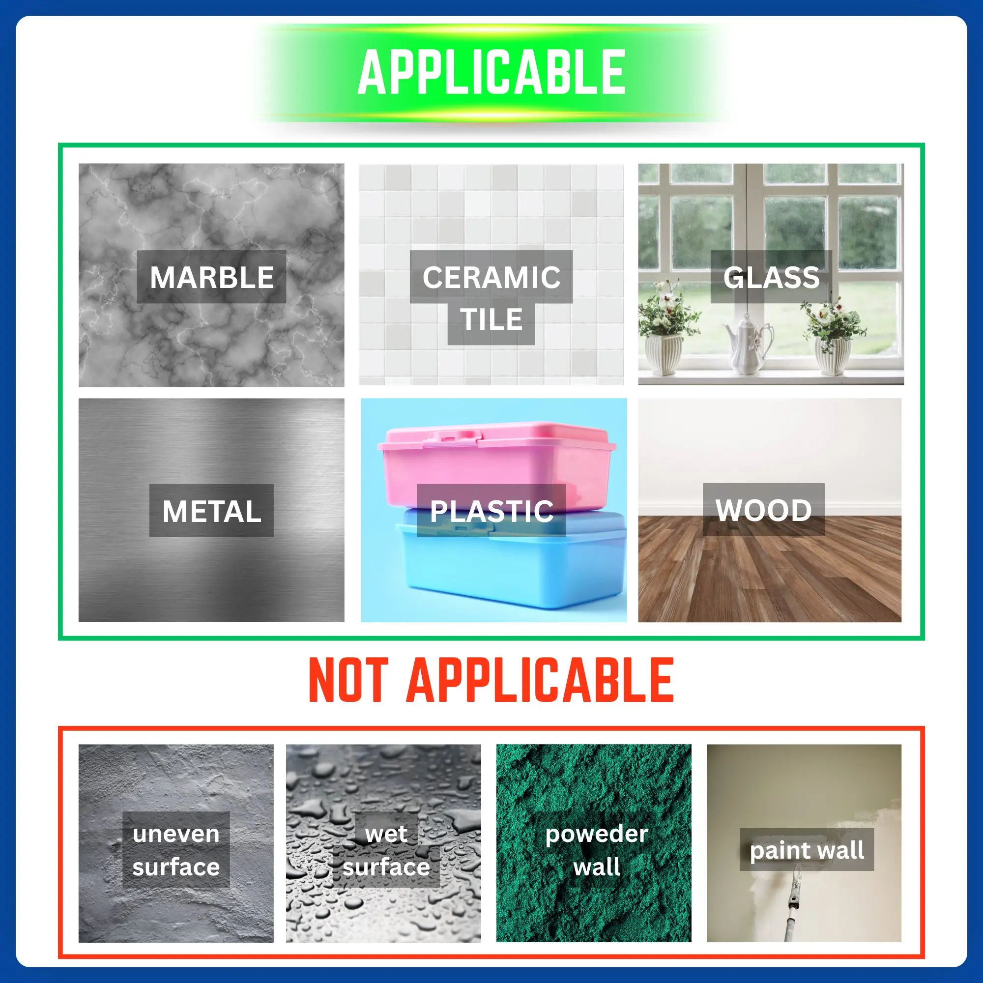 【Traceless & Weatherproof】 – This industrial strength super strong adhesive tape works great on almost any smooth surface indoors or outdoors, such as wall, tile, glass, plastic, metal, marble, ceramic, etc.