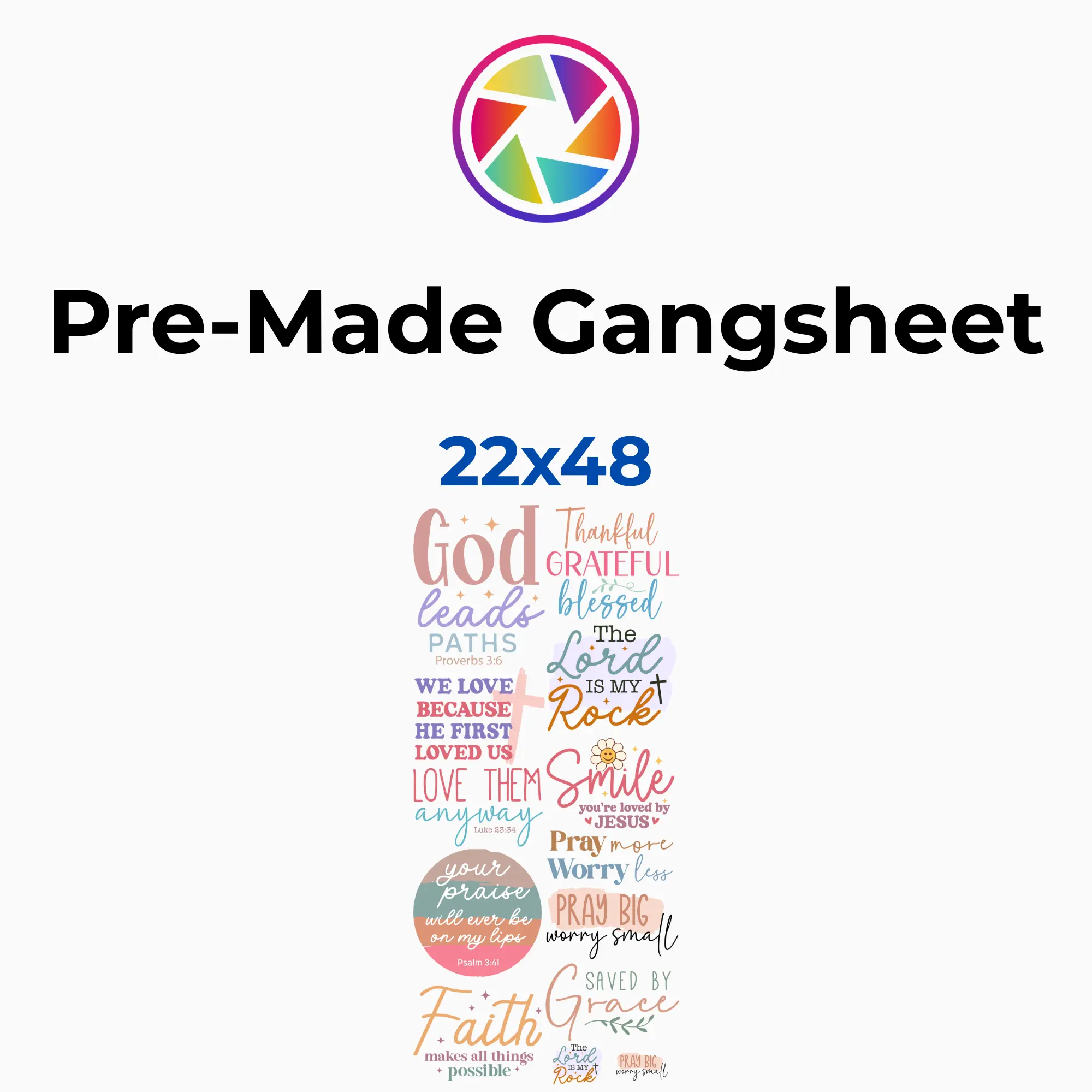 Our Faith Over Everything 22x48 Pre-Made Gang Sheet is perfect for creating uplifting, everyday faith-based apparel your customers will love — now with even more value.