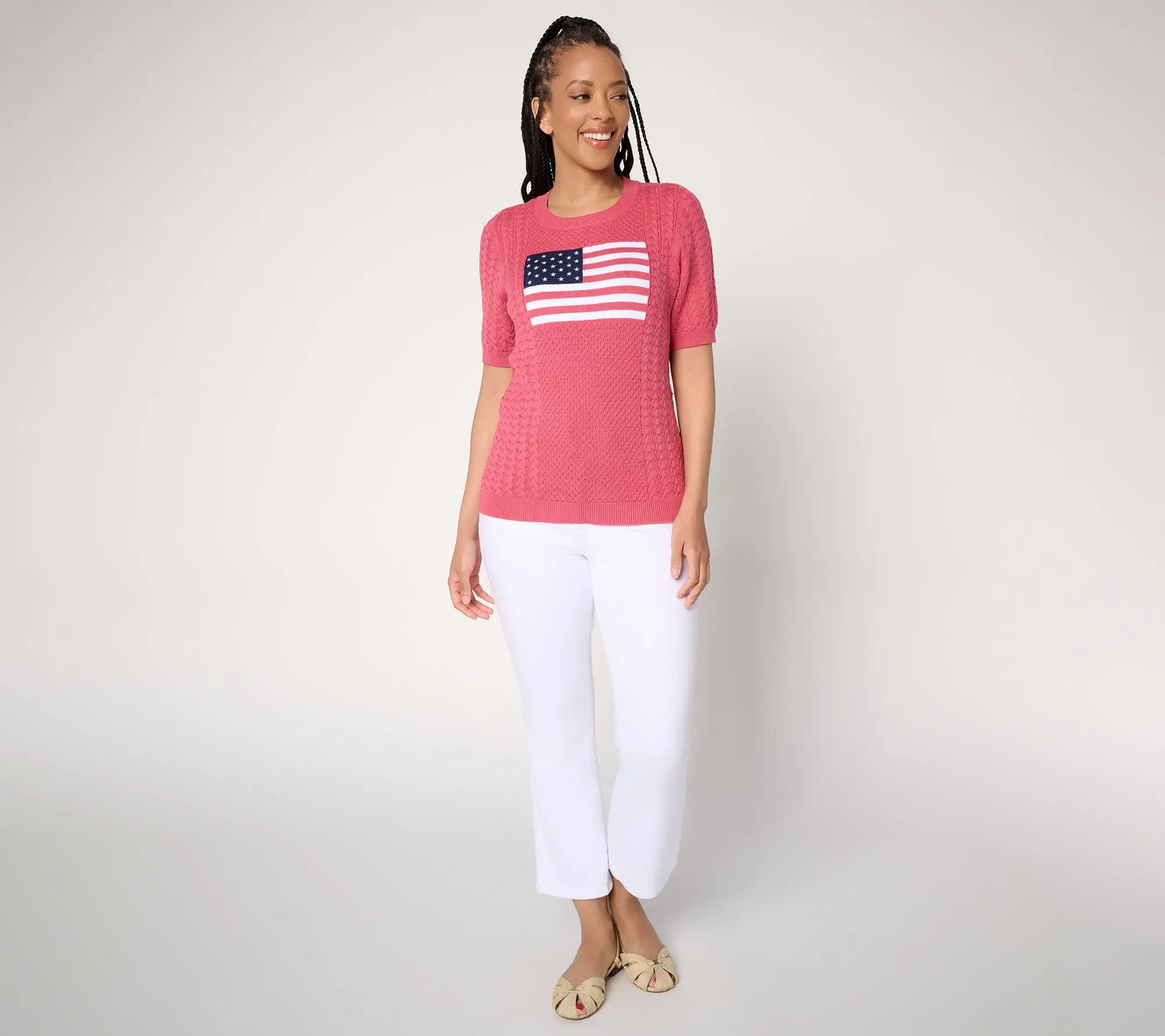 Joan Rivers 100% Cotton Cable Knit Elbow Sleeve Flag Sweater