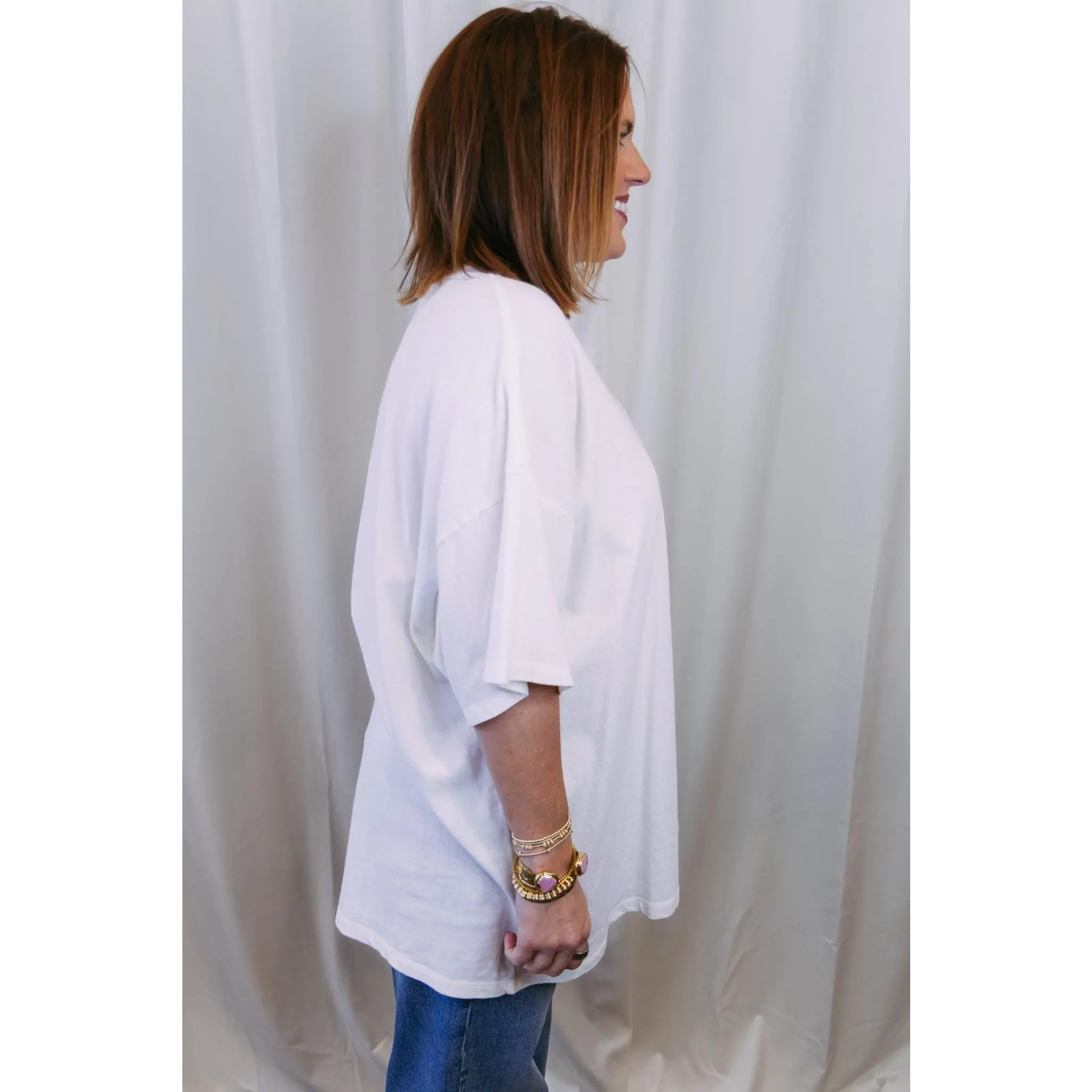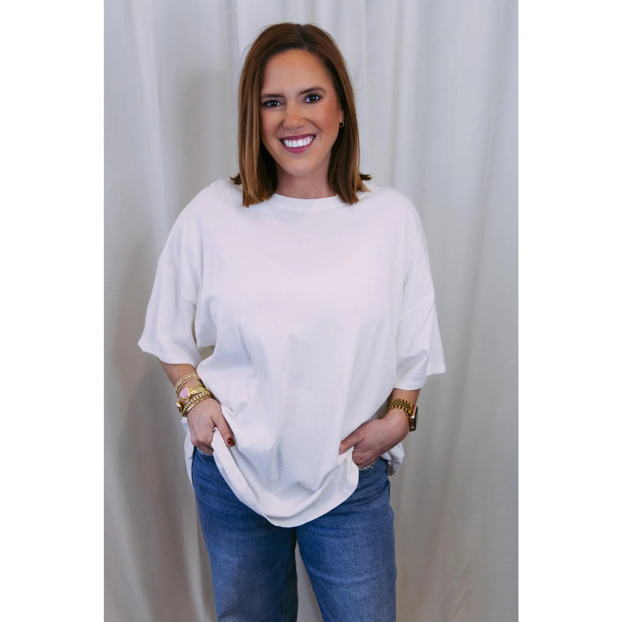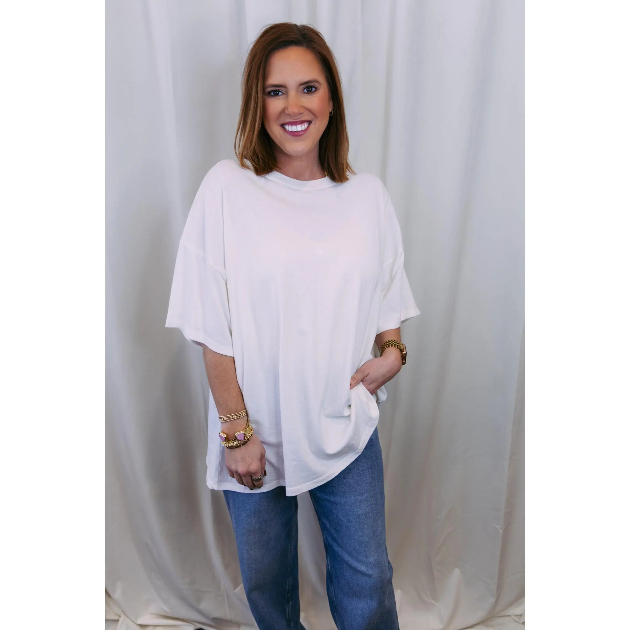 The perfect everyday essential—this oversized basic tee is designed for effortless style. Crafted in a soft off-white hue, it's the kind of piece you'll reach for again and again. Throw it on with your favorite jeans, layer it under a jacket, or wear it solo. Relaxed, comfortable, and endlessly versatile, it's a wardrobe staple that works as hard as you do.