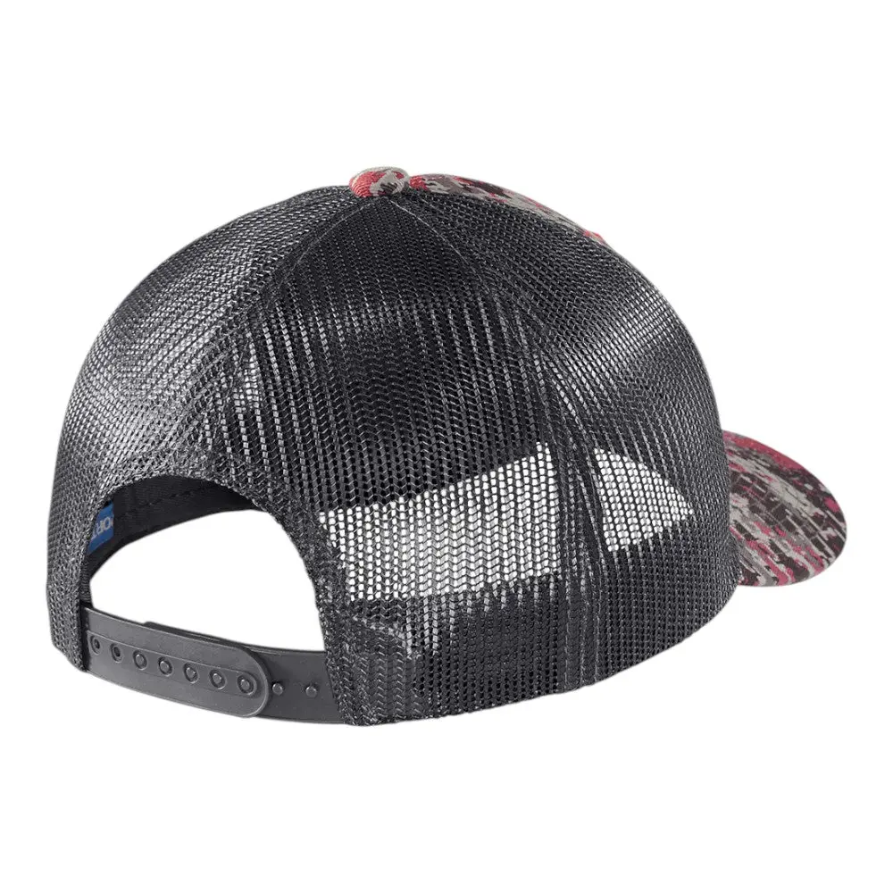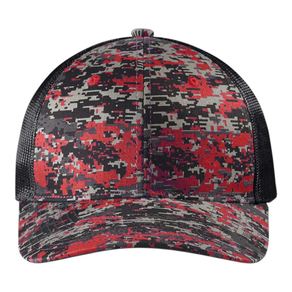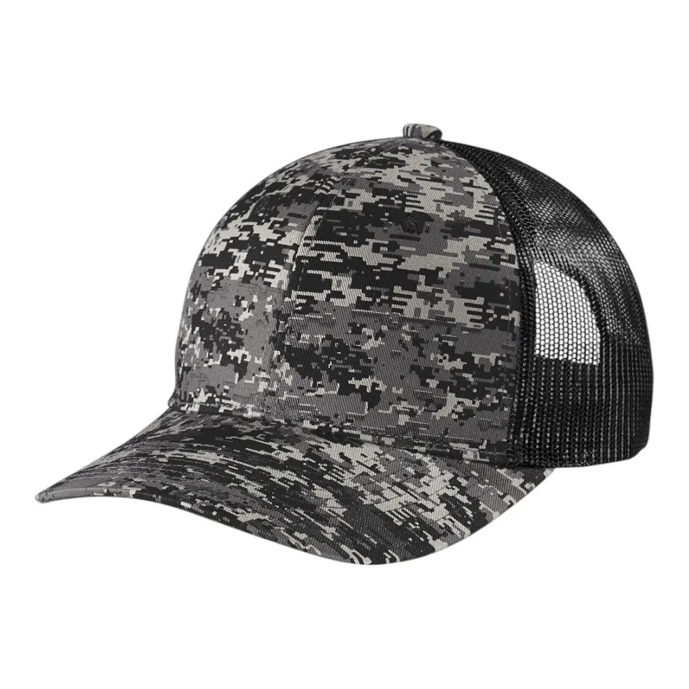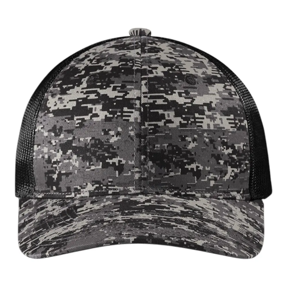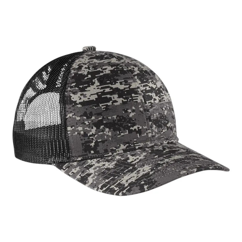 This stylish trucker cap features a unique digital camo design, with a structured fit and a 7-position adjustable snapback closure. Made from a durable cotton twill front and breathable polyester mesh mid and back panels, it's perfect for both casual and outdoor wear.