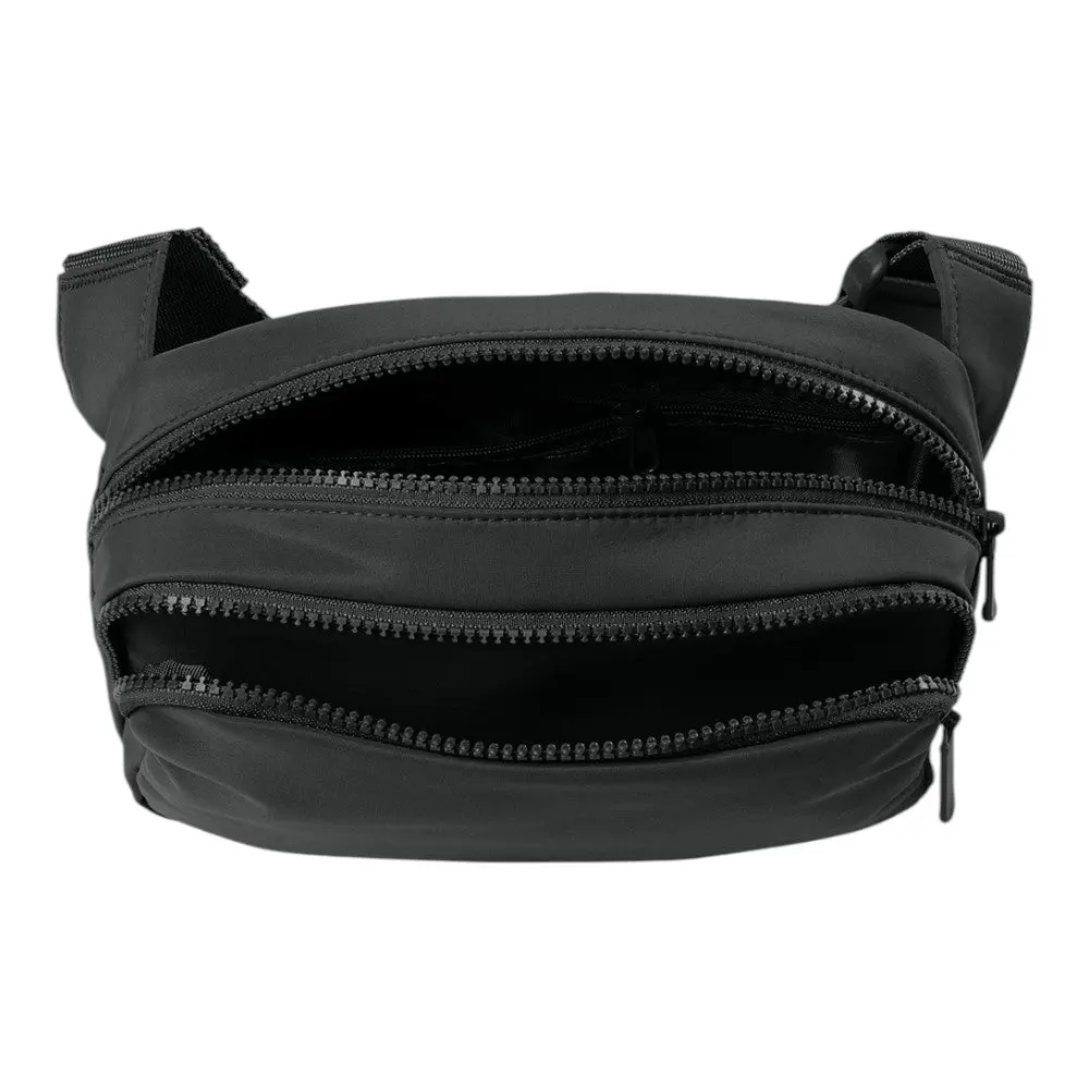 This matte dual-compartment crossbody bag combines style and organization. Made with smooth matte polyester, it features two zippered compartments, an interior zippered pocket, and an adjustable shoulder strap for comfortable, hands-free carry. Perfect for everyday use and travel.