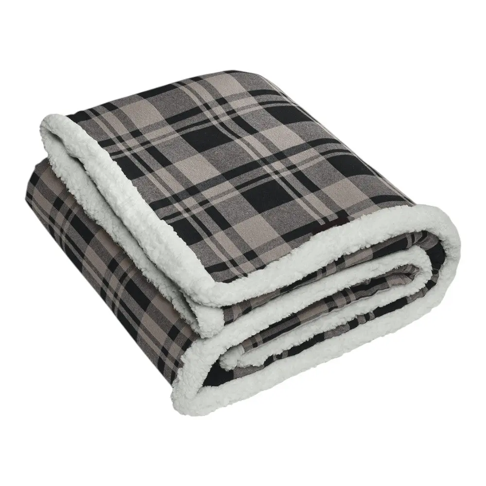 This flannel sherpa blanket combines classic style with cozy warmth. Soft cotton flannel on the front and plush sherpa fleece on the back make it ideal for chilly days. Perfect for lounging at home or bundling up outdoors, it delivers both comfort and durability.