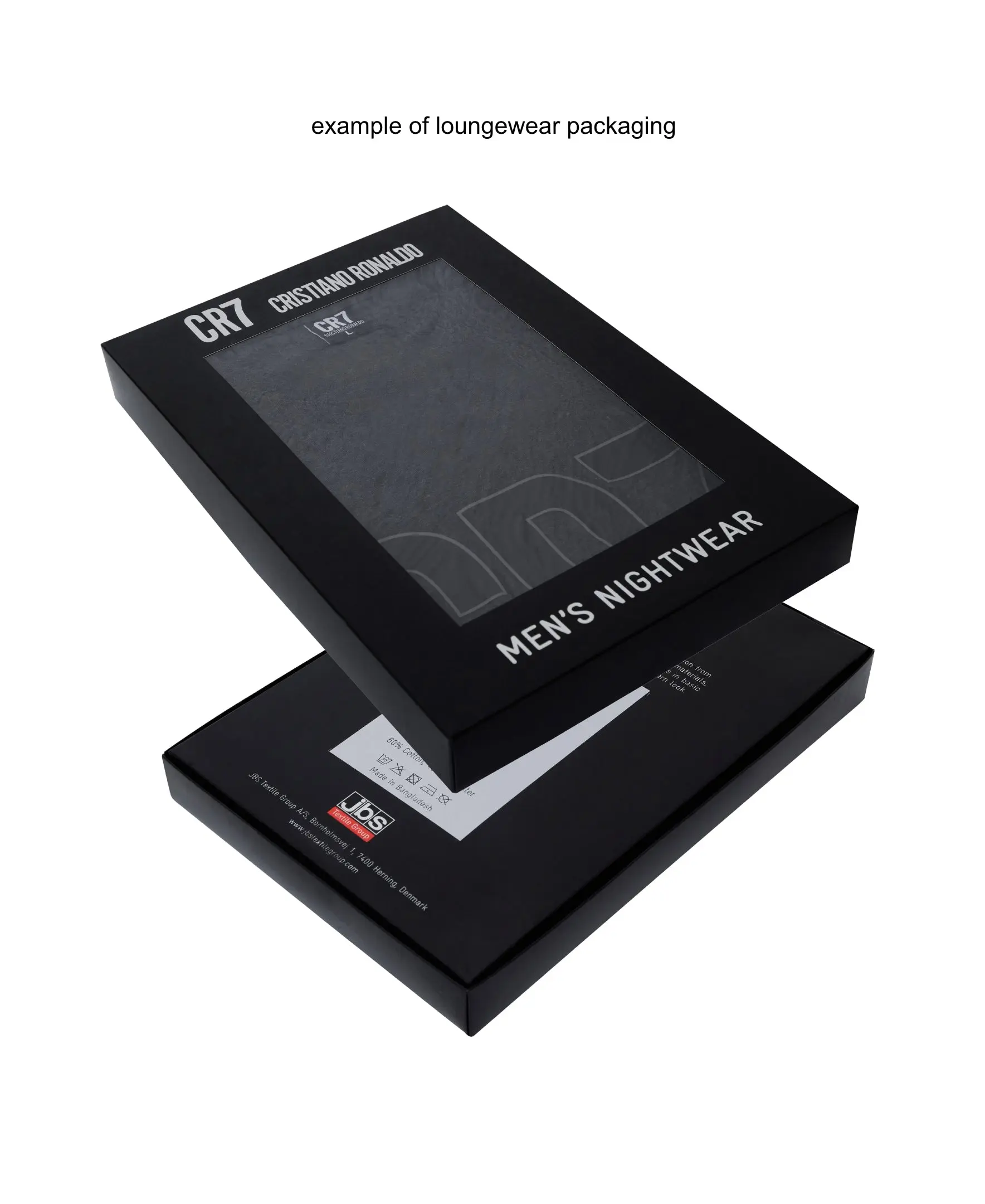 CR7 Men's pajama – loungewear sets for day through night, stylish comfort. Shirt and pants read 'CR7 nightwear'.