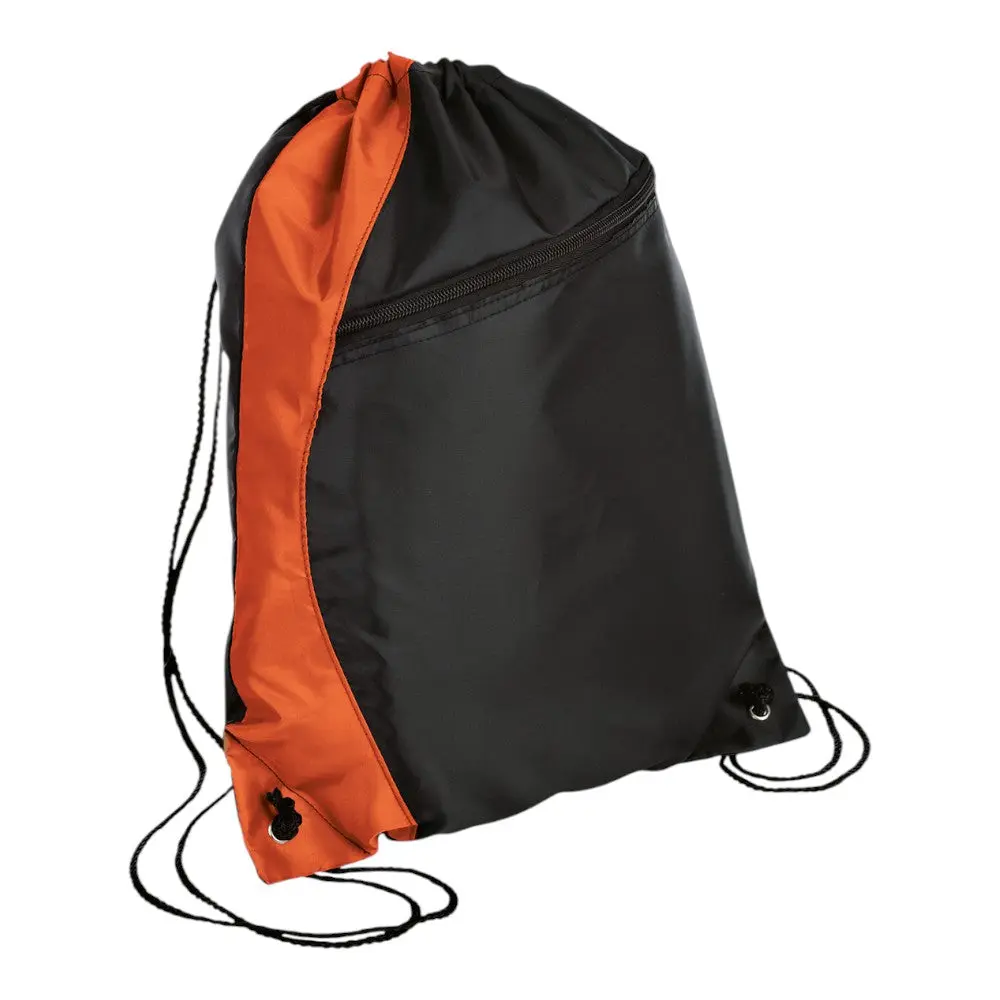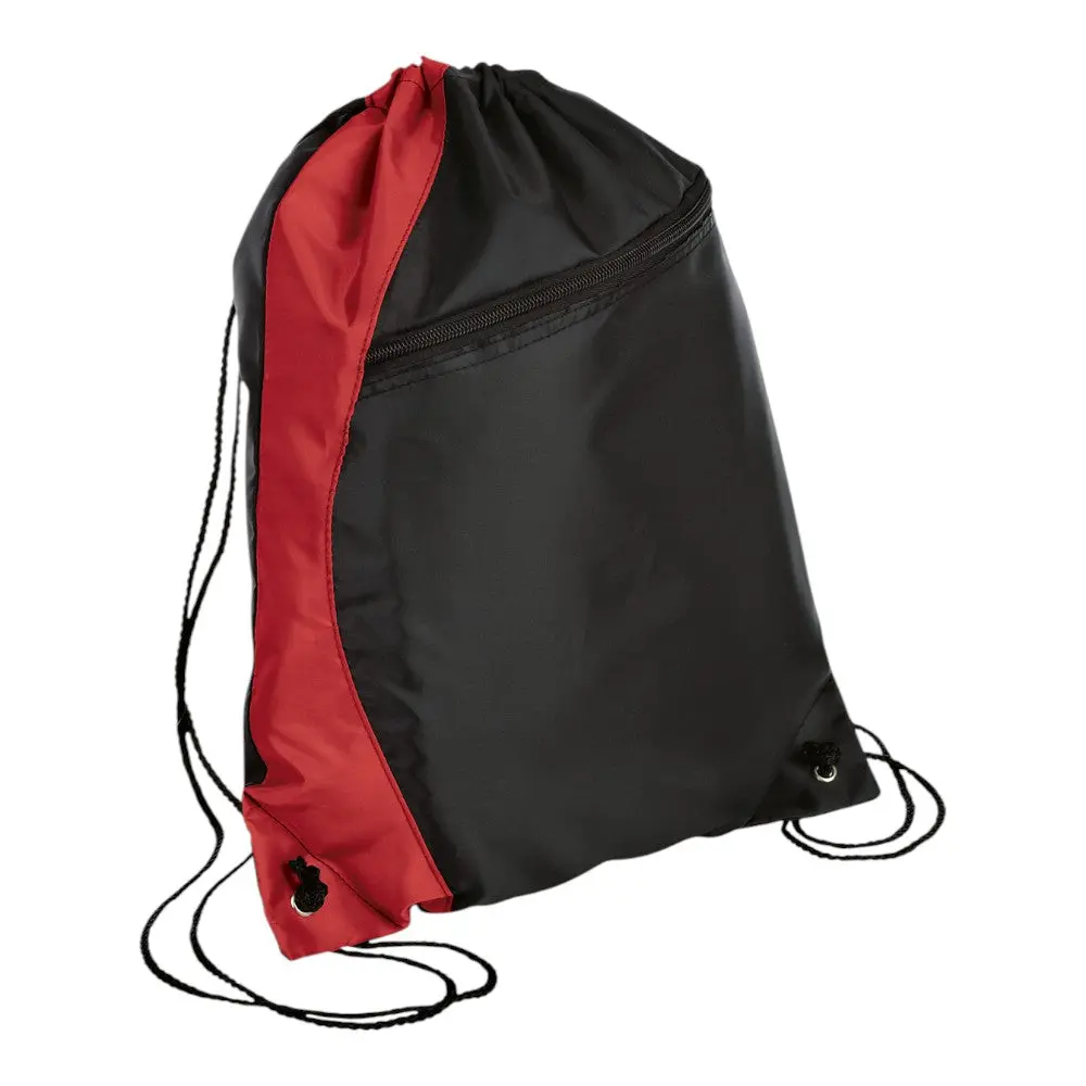 This colorblocked cinch pack combines style and function with its asymmetrical zippered front pocket and black drawcord closure, allowing it to double as a backpack. Perfect for carrying essentials while making a distinctive statement.