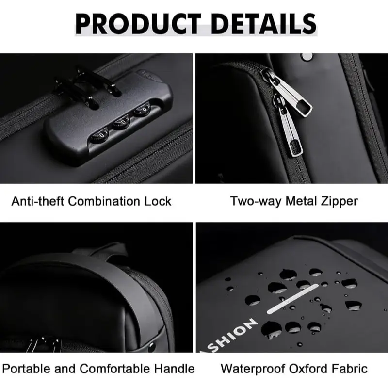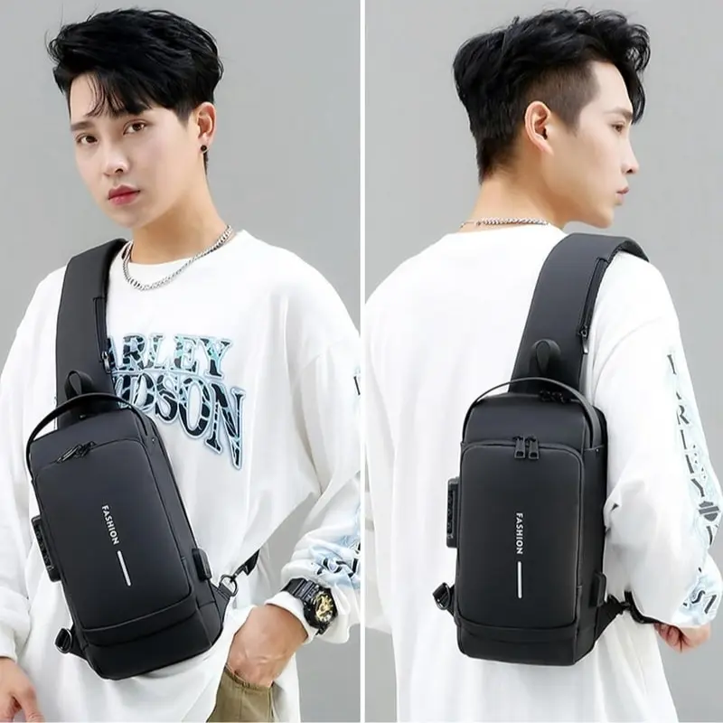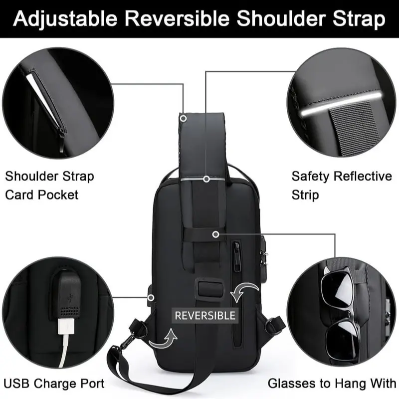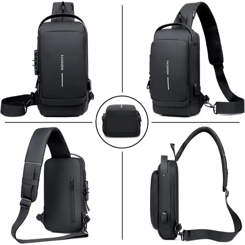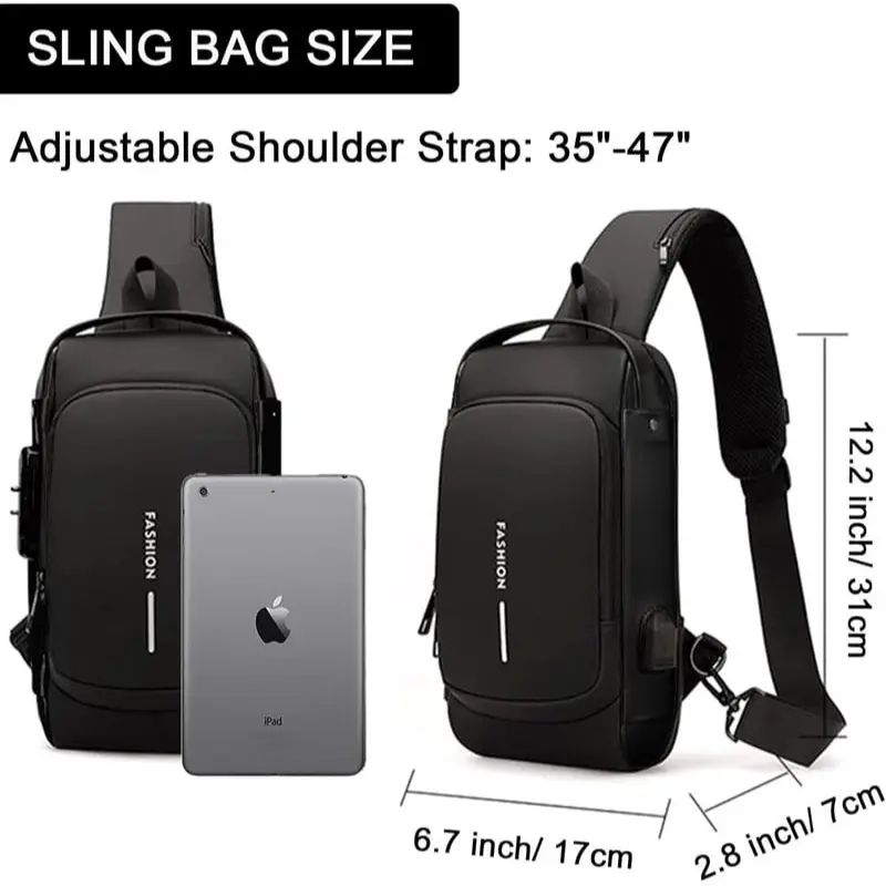 Anti-Theft Sling Bag Sling Bag for Men Anti-theft USB Crossbody Shoulder Backpack Purse Waterproof PU Leather Chest Bag Travel Daily Use