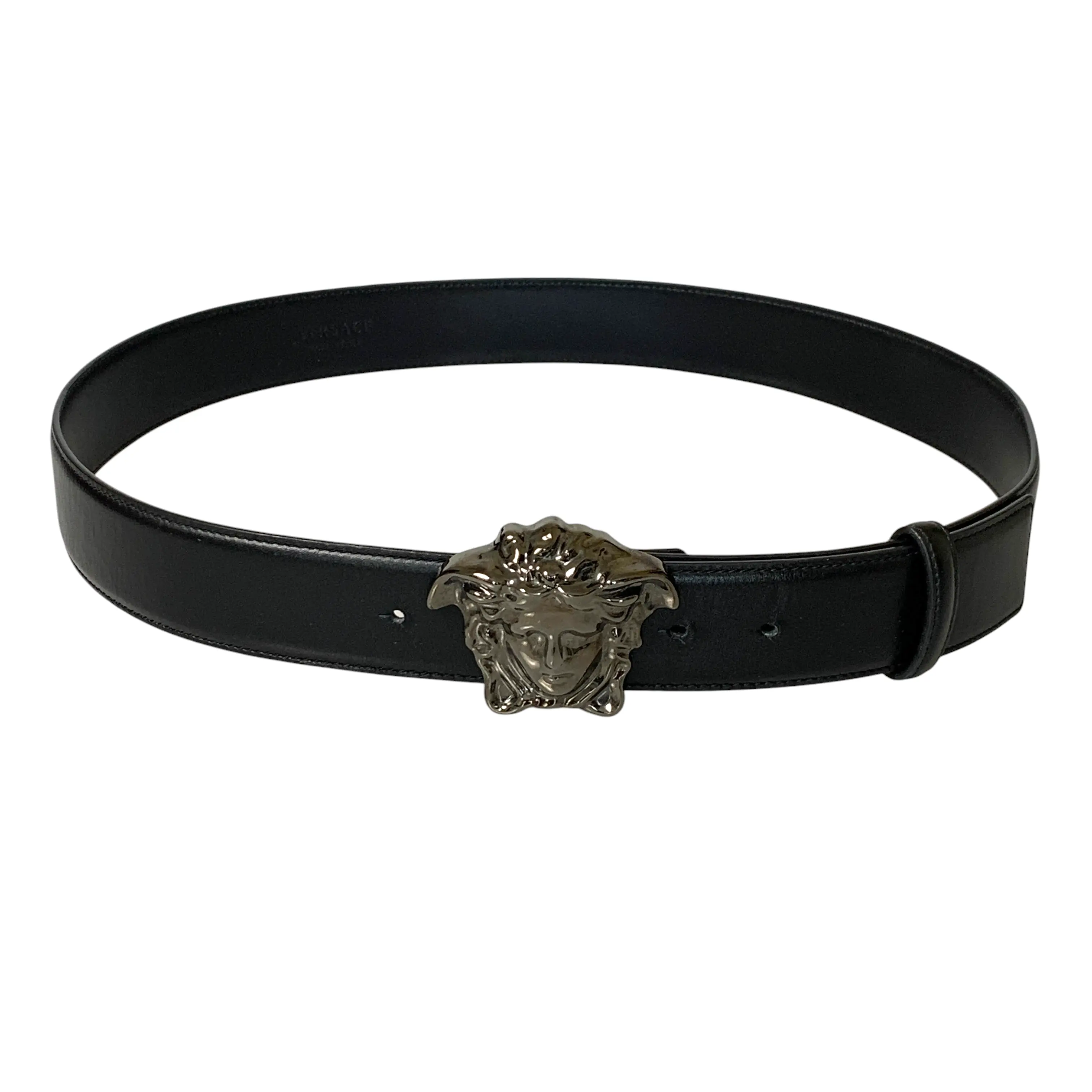 Pre-owned Versace medusa black Leather Belt unisex authentic w COA size 90 cm 36