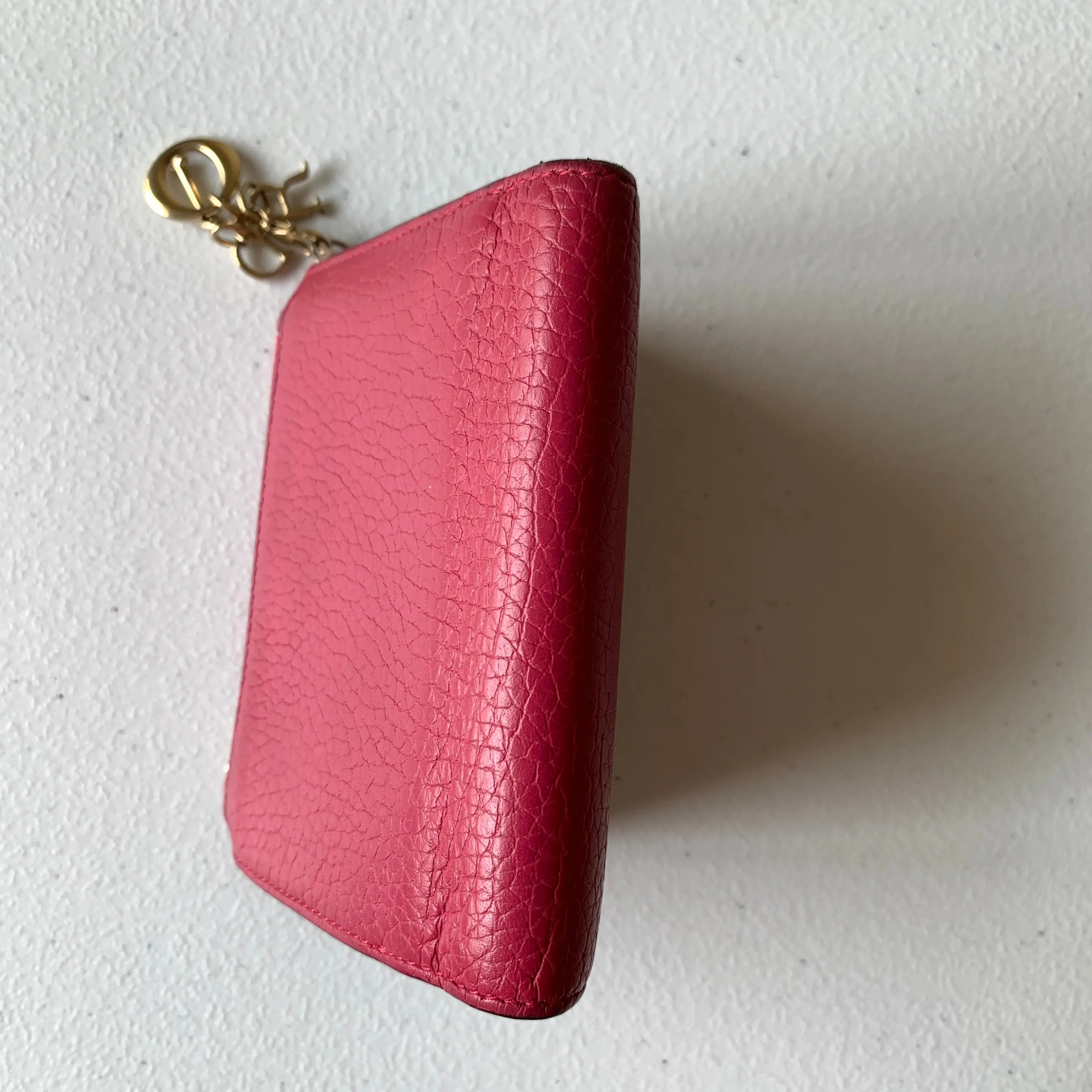 Pre-owned Dior Diorissimo Small Leather Goods pink Leather Wallet authentic with COA and logo charm