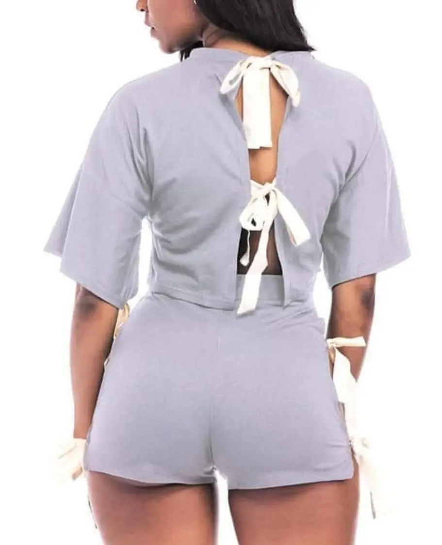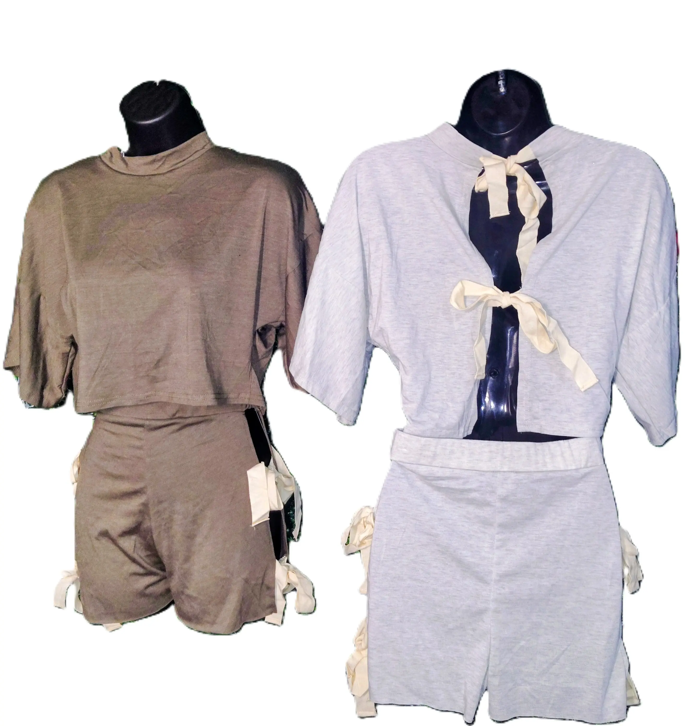 Lady Luxe Fashions Women’s 2‑Piece Short Sleeve Set – Bow‑Back Top and Bow‑Side Short