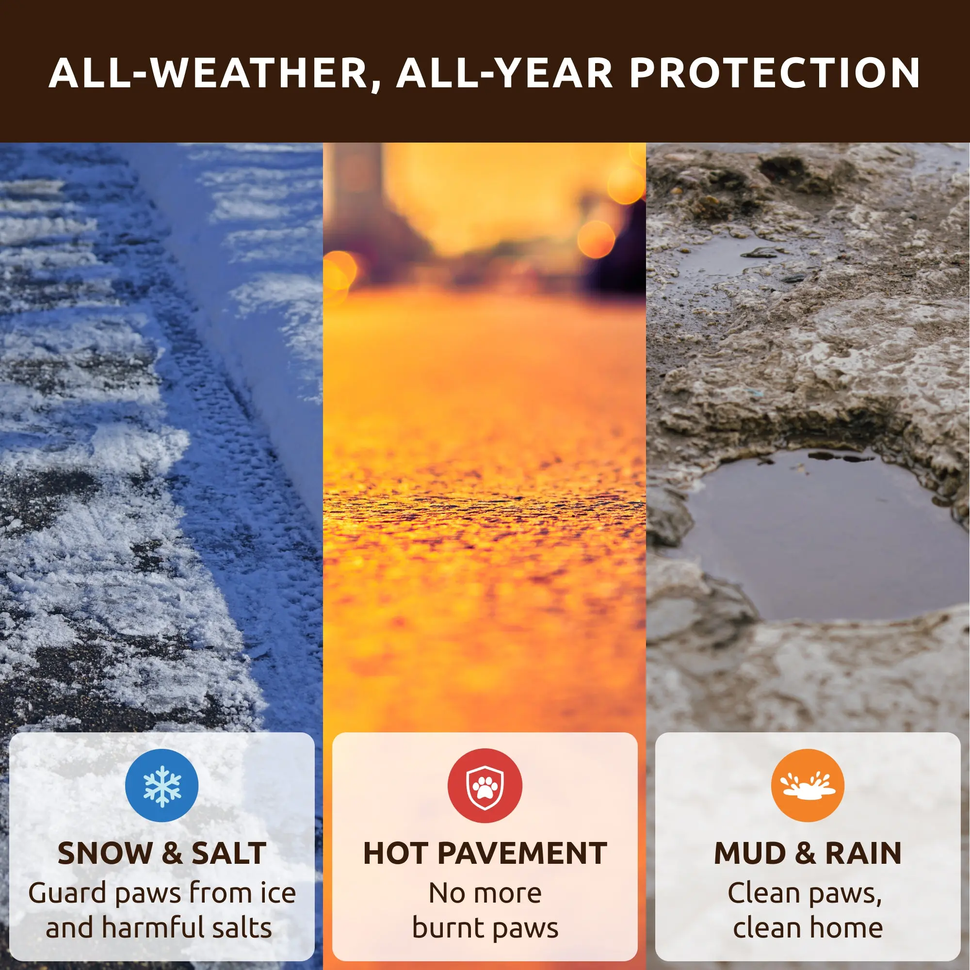 ·Shield Against Elements: Protects paws from heat, cold, ice-melting chemicals, and rough surfaces.