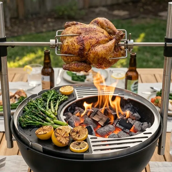 From whole chicken to roasts and specialty cuts, the rotisserie produces tender, evenly cooked food with a crisp, caramelized exterior. Engineered for smooth, reliable rotation and easy setup, it expands your grill from open-fire cooking to slow, controlled roasting — all while creating a captivating, social centerpiece at the table.