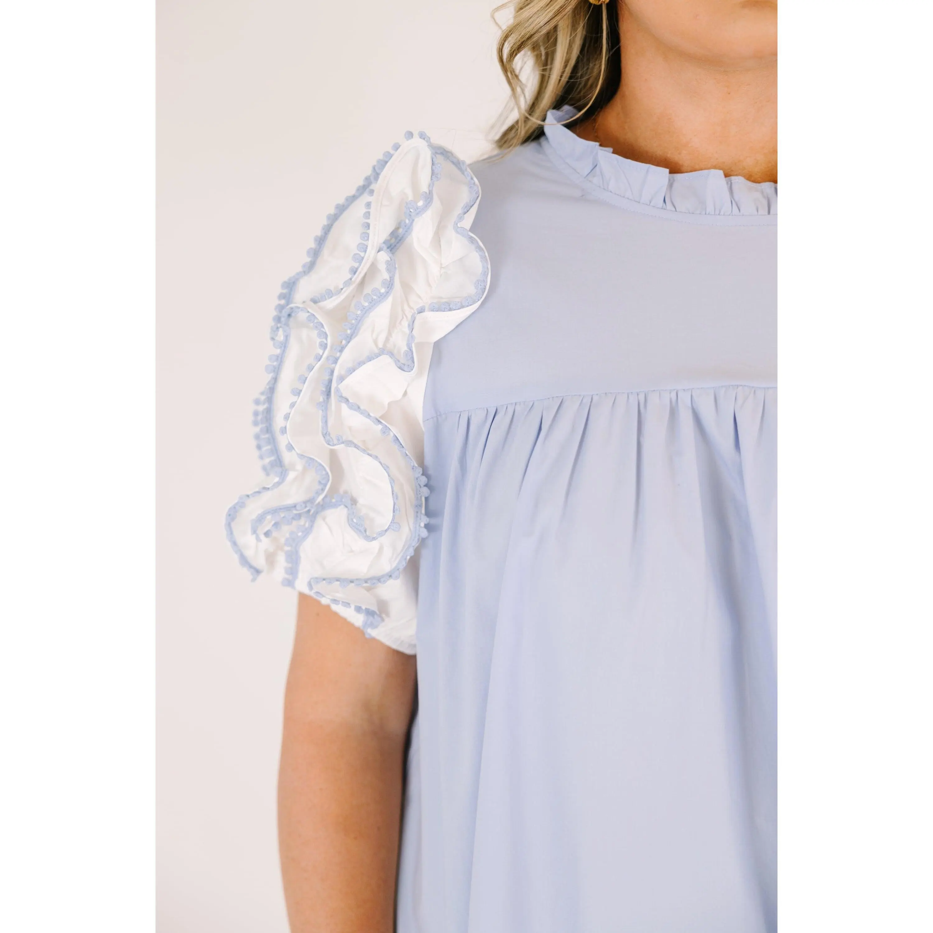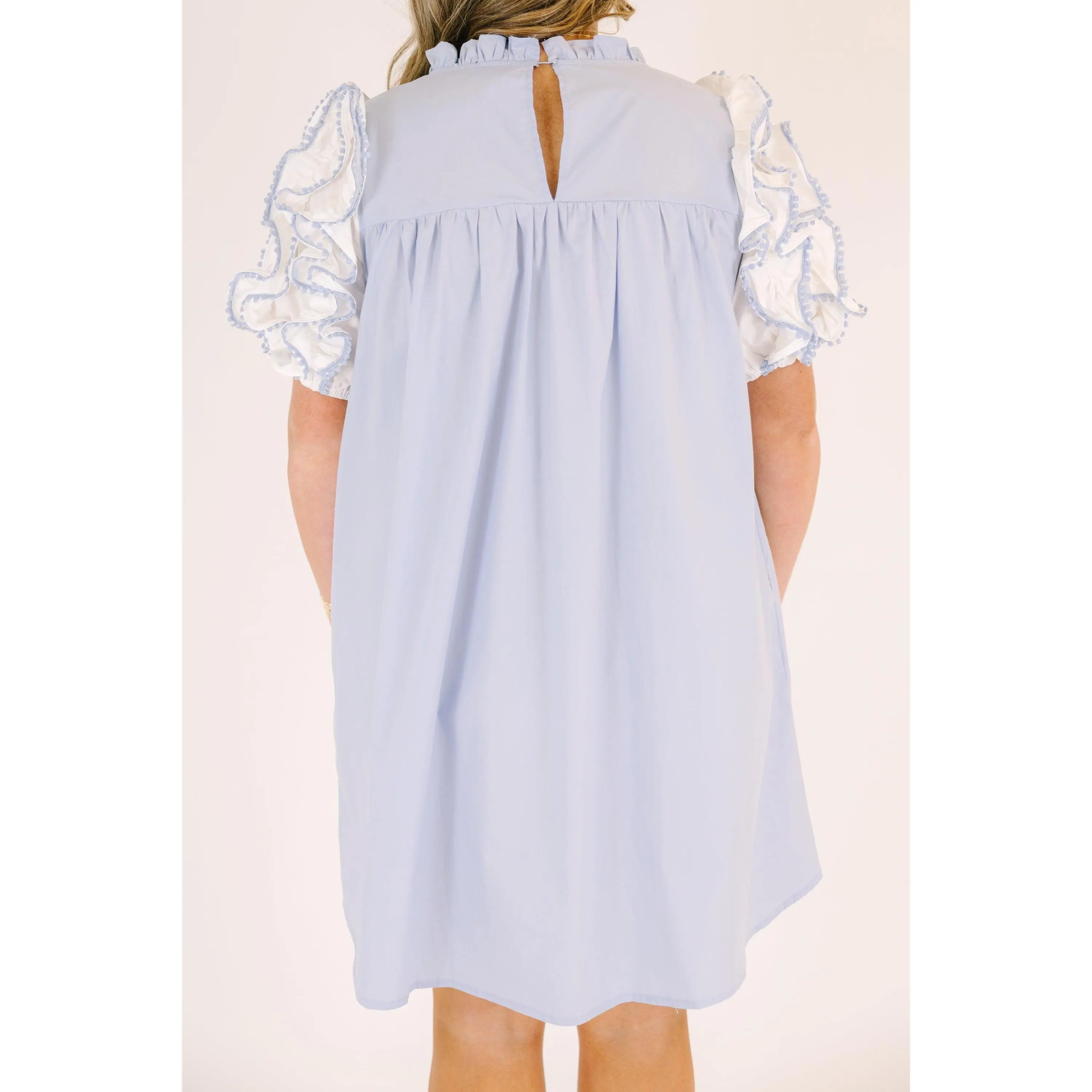 Slip into effortless elegance with this blue dress that's equal parts sophisticated and fun! Delicate ruffle sleeves add a flirty touch, while the cheeky keyhole closure at the back keeps things interesting! Perfect for date night, brunch with friends, or whenever you want to feel like the best version of yourself! A versatile wardrobe essential that works as hard as you do!100% Cotton Actual product colors may vary from images shown due to different viewing devices and lighting.