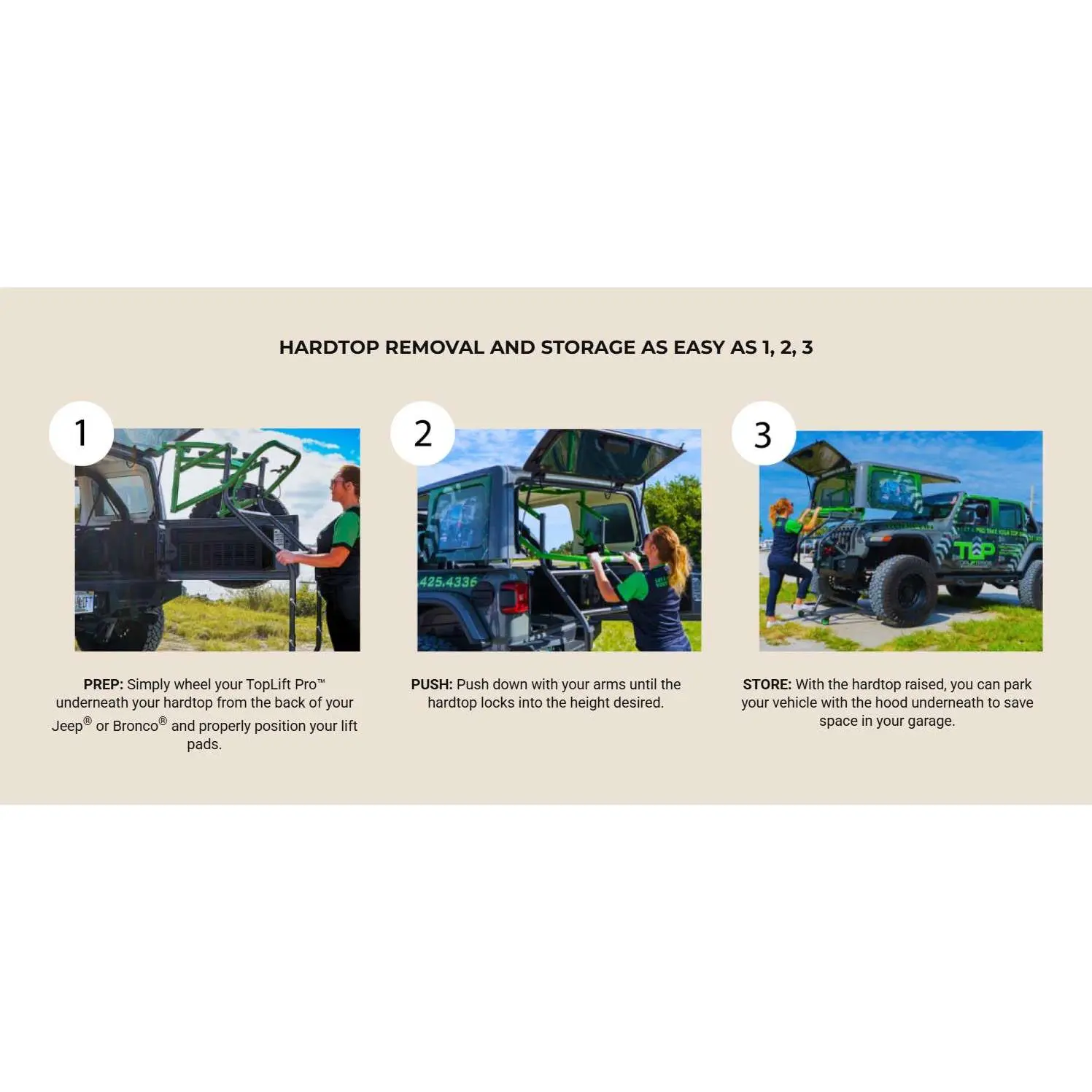 Upgrade your Jeep Wrangler or Ford Bronco ownership experience with the TOPLIFT PRO v2.0—the only patented, original hardtop removal hoist designed for convenience, durability, and superior performance. Say goodbye to hardtop removal frustration and hello to a simpler, safer, and more enjoyable adventure.